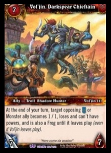 Vol’jin é um Troll da Selva, filho de Sen’jin, um sábio feiticeiro e líder dos trolls Lançanegra. Ele é o atual líder dos Lançanegra [Darkspear] e um dos principais personagens do cenário da horda moderna. Sendo bastante influente na facção de modo geral. – Apesar de apagado agora com Garrosh no poder.