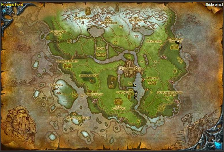 Dragonblight. Seu alvo serão os Deathbringer Revenants, como mostrados no mapa. O drop rate é em torno de 25%, um pouco menor que os dos Wandering Shadows.