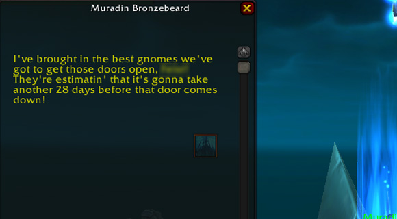 Para conferir a data de lançamento da próxima wing, basta falar com o NPC da sua facção (Saurfang ou Muradin).