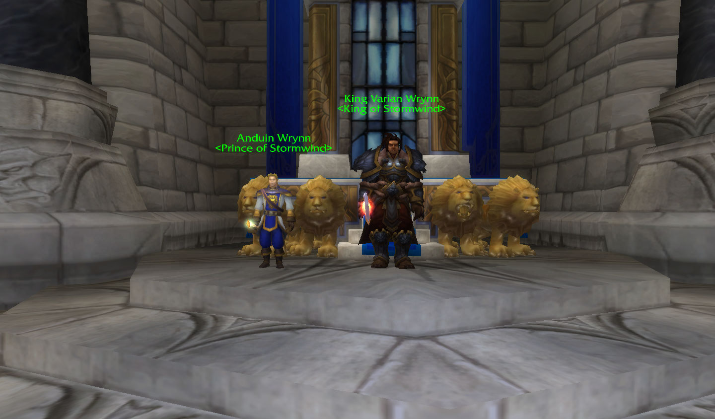The Park foi destruído e o Dwarven District ganhou umas facilidades, como banco e AH. O Nivaldo me avisou de uma estátua gigante do Varian Wrynn na porta da sala do trono, eu tinha tirado screenshot só por que achei bonita, mas não sabia que era nova. Lá dentro, Anduin cresceu e ganhou um visual adolescente.