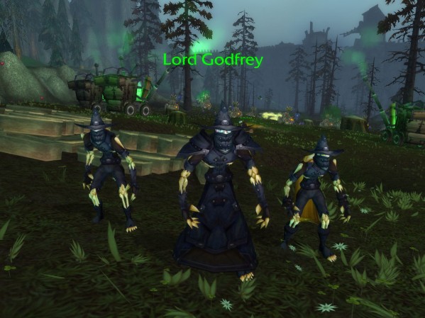 Godfrey é ressuscitado como Forsaken e lidera o ataque contra Pyrewood Village, onde Darius Crowley e outros sobreviventes de Gilneas estavam instalados. Depois disso, Godfrey nos diz onde está Lorna, filha de Darius, e nos ajuda a capturá-la, a pedido de Sylvanas.