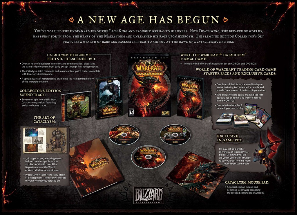 Blizzard acaba de anunciar a Collector’s Edition do Cataclysm! A caixinha dos sonhos contém os seguintes itens – além da expansão do World of Warcraft: Cataclysm, claro.