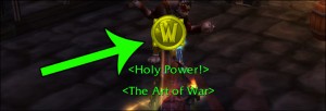A outra novidade interessante da última build do beta é um “PowerAuras” integrado. Se você não conhece o addon (falo mais dele neste post), ele basicamente serve para avisar os players quando algum spell procou. Como fica difícil identificar isso na interface normal, Blizzard adicionou um ícone, que aparece no seu character quando esses spells situacionais ficam disponíveis. No exemplo acima vejam o proc de Art of War.