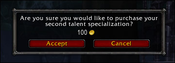A nova build do beta trouxe o dual spec bem mais barato, apenas 100g. Assim todos os players de level 40 vão ter a oportunidade de comprar. Buaaaaa gastei 1k com isso!
