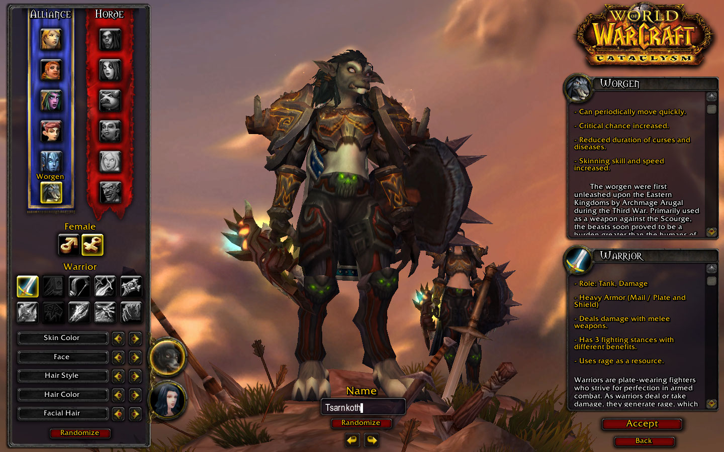 Saiu lá no wow.com! Todas as combinações possíveis para a senhora worgen!!