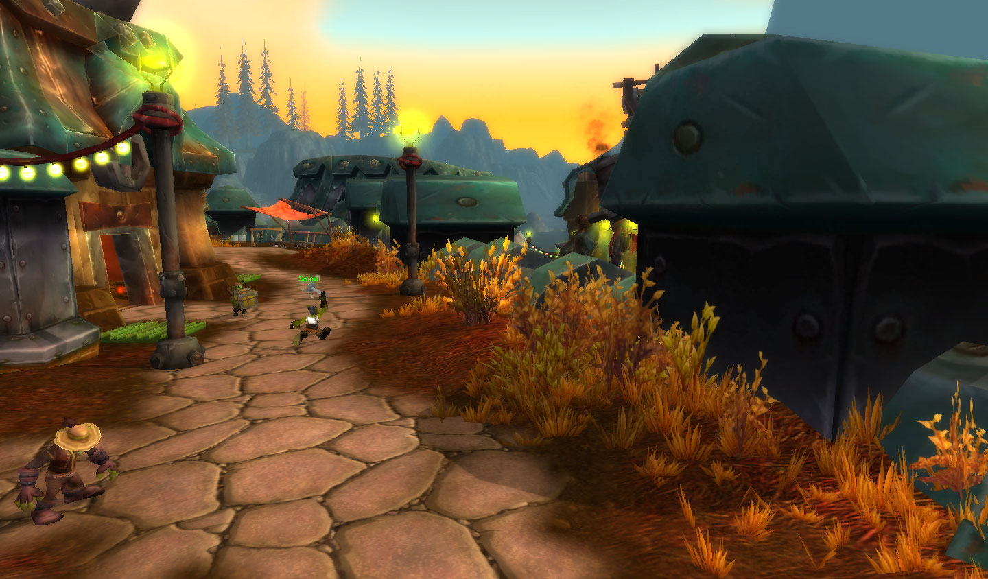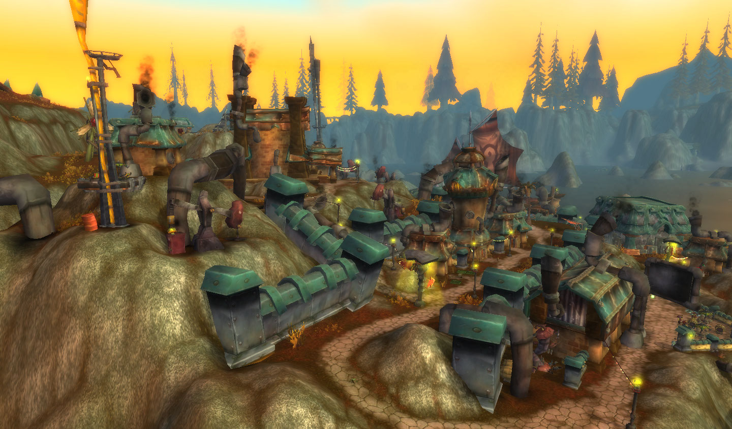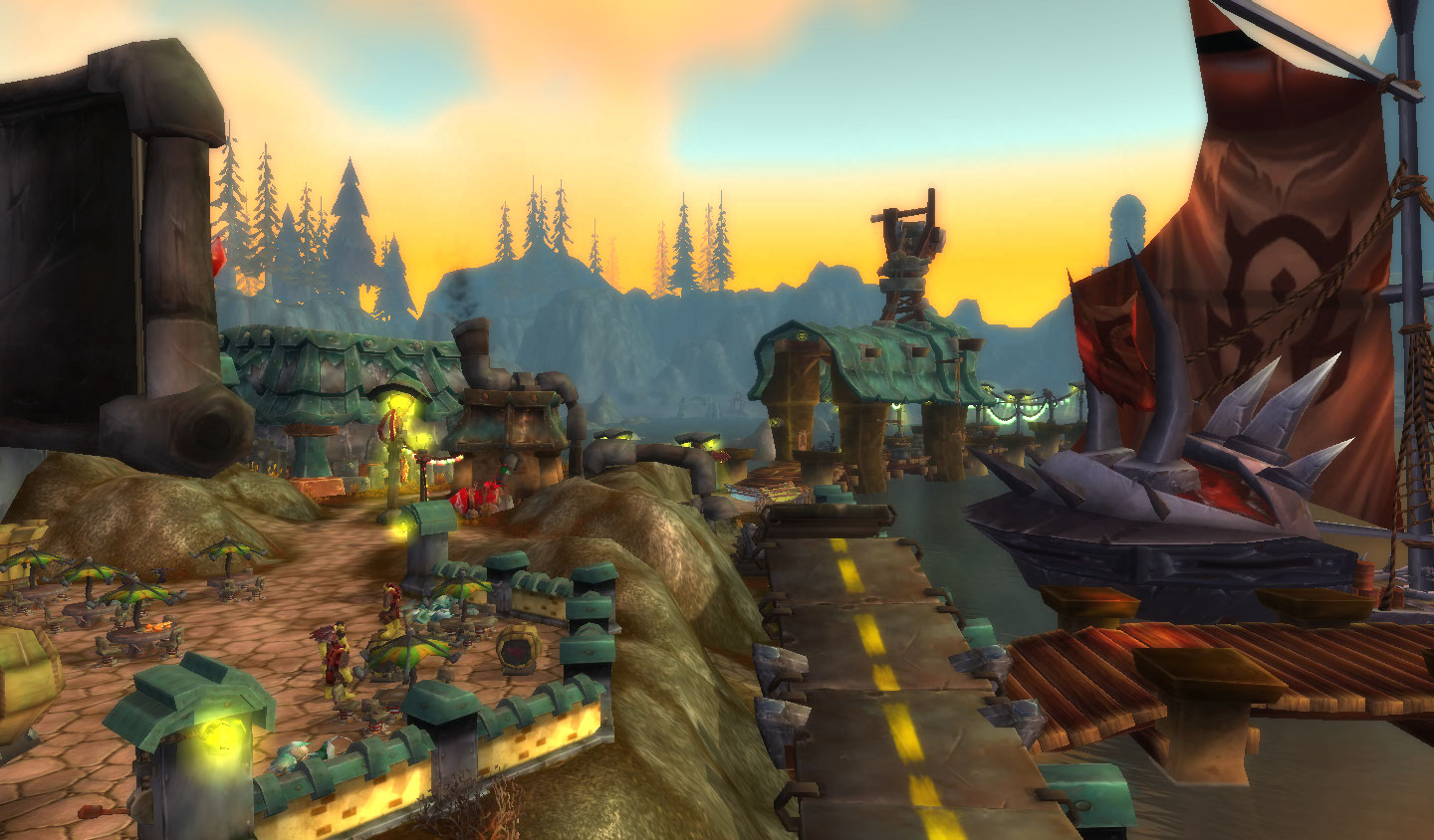 Estradas cortam todo o território. Mas não são estradas comuns! Os homenzinhos verdes capricharam nas cores e luzes de suas construções. E uma fortaleza avermelhada guarda uma passagem para Orgrimmar.