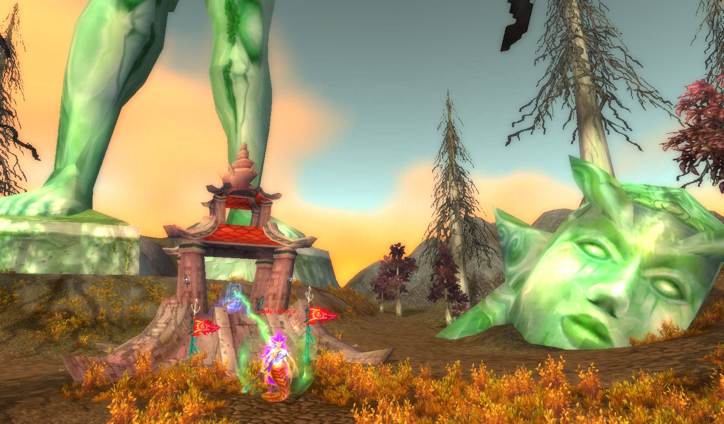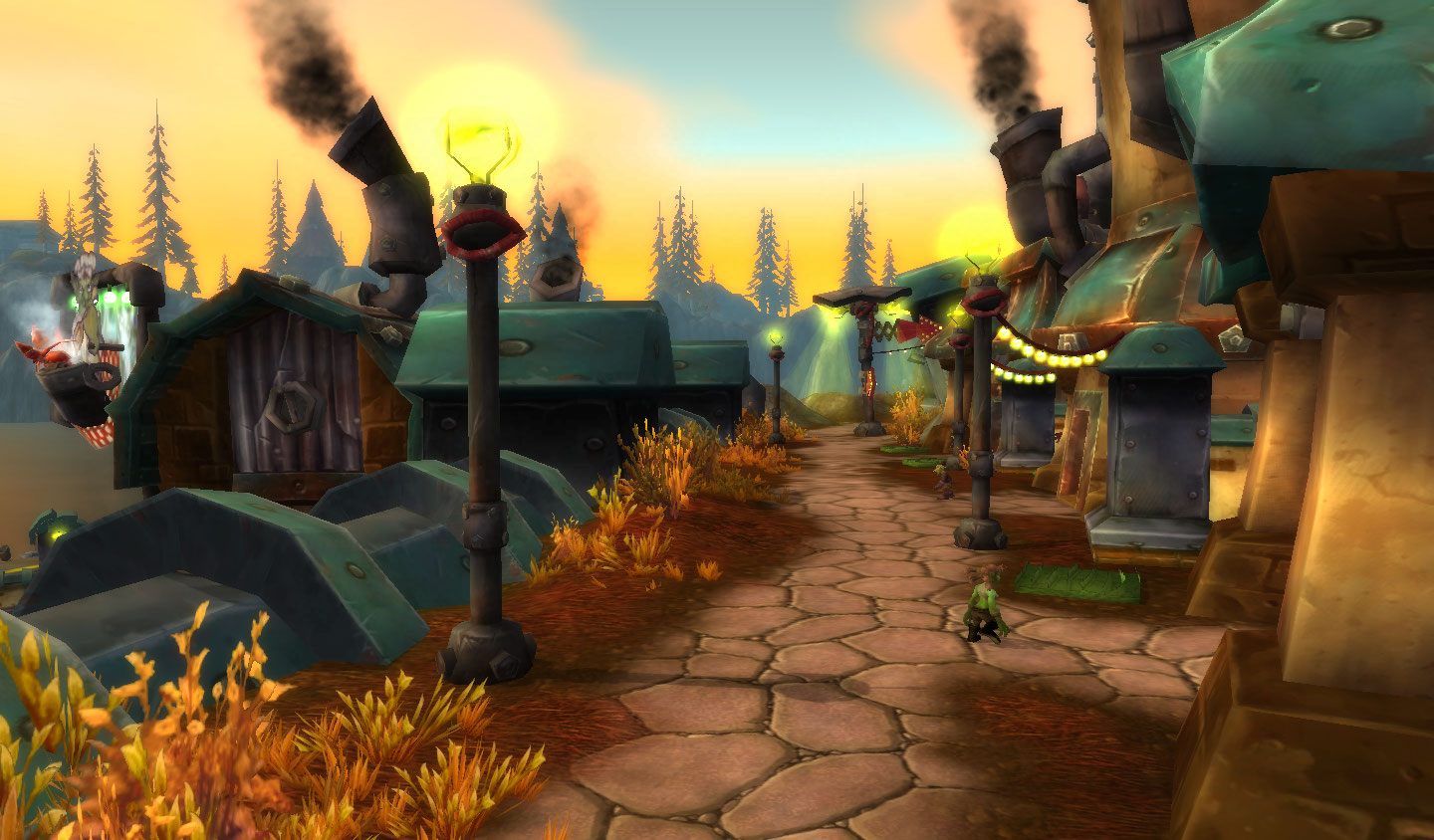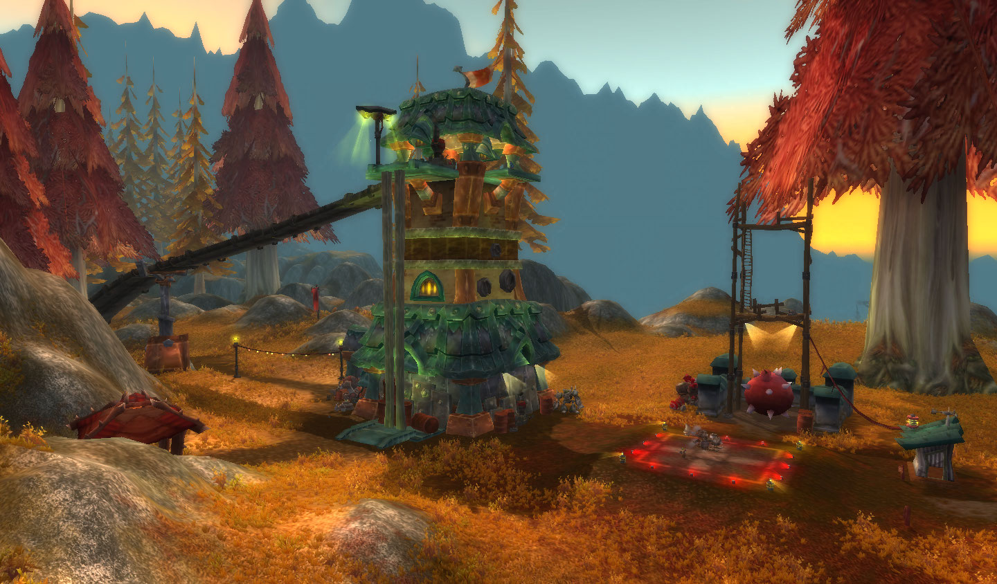 Estradas cortam todo o território. Mas não são estradas comuns! Os homenzinhos verdes capricharam nas cores e luzes de suas construções. E uma fortaleza avermelhada guarda uma passagem para Orgrimmar.