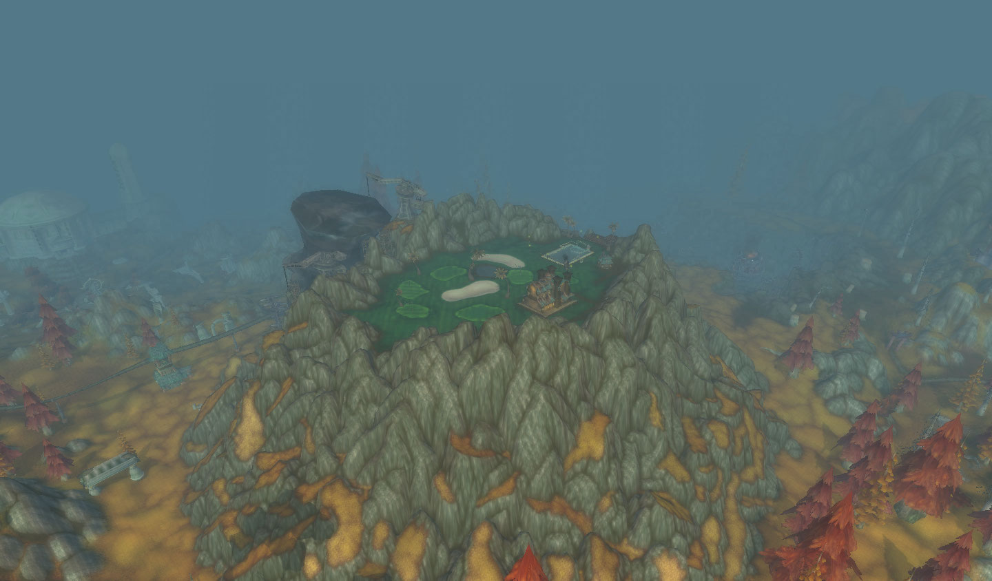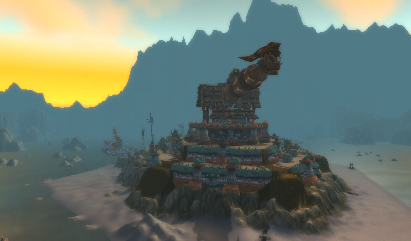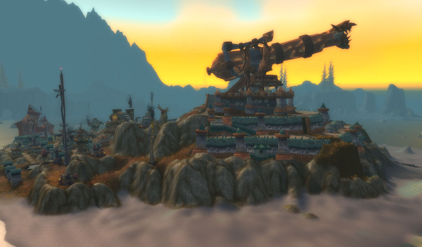 A ilha toda mudou os gigantes elites sumiram e a caverna virou a cidade dos goblins, com um canhão gigante no topo. E o mapa, em forma de logo da Horde. YES!
