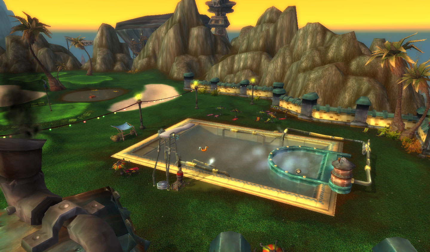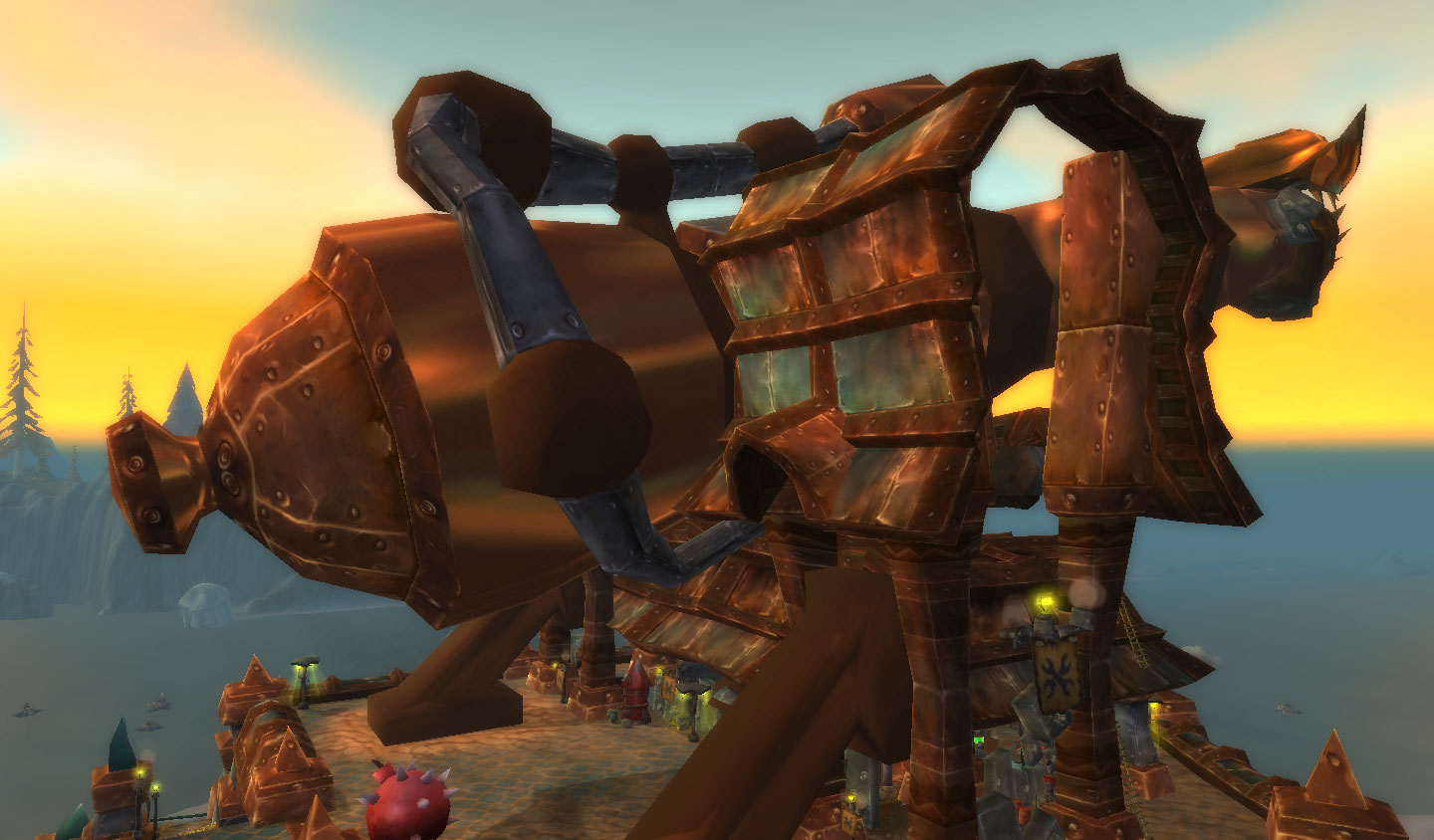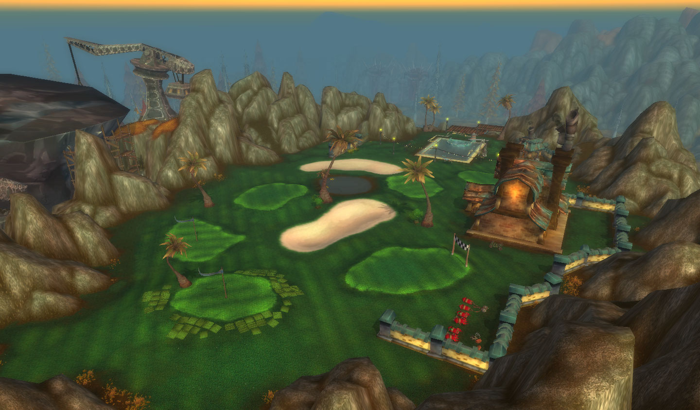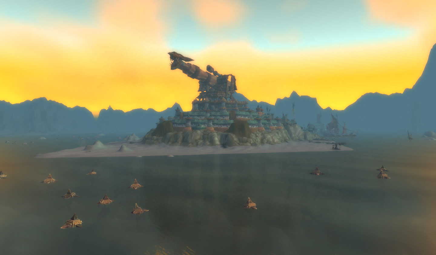 A ilha toda mudou os gigantes elites sumiram e a caverna virou a cidade dos goblins, com um canhão gigante no topo. E o mapa, em forma de logo da Horde. YES!