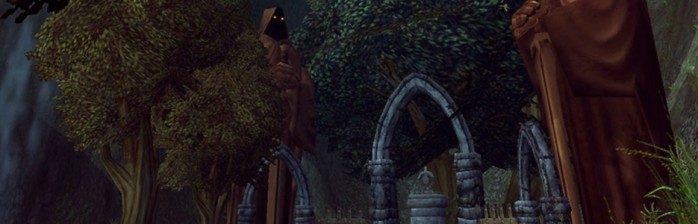 Na floresta de Duskwood, um herói desconhecido está enterrado. Até aí, normal, mas o estranho é que o túmulo dele está guardado por duas estátuas gigantes, aquelas mesmas da tela de login antiga ou do Dark Portal. O lugar se chama Beggar’s Haunt, e tem até umas quests para horda ali. Na chegada do Cataclysm, parece que as estátuas haviam sido retiradas e logo depois foram recolocadas. Mas quem está enterrado? Nem o WoWWiki sabe.