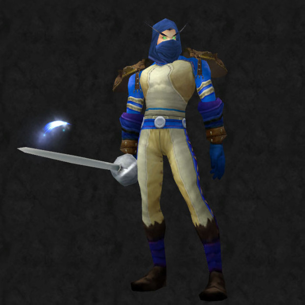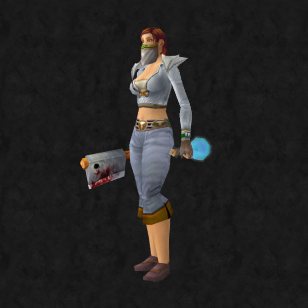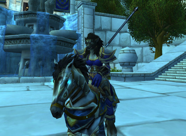 Comentário: esse conjunto foi uma reciclagem de um antigo transmog publicado aqui. Ele foi feito para combinar com o Corcel Branco Veloz de Ventobravo.