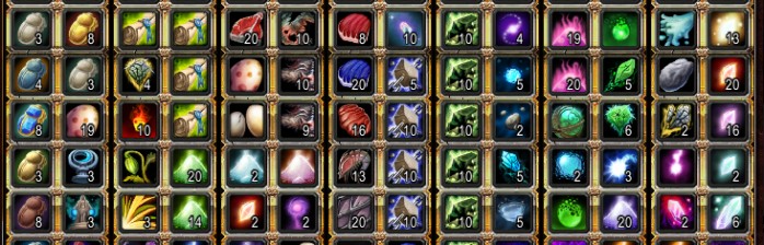 – Tecidos: Seribrasa, Friotrama e Etertrama são usados para fazer bags de diversos slots. Na próxima expansão certamente haverão novos tipos de bags com mais espaço, mas acho bastante dificil alguem que comece a nivelar um novo personagem do nada ou algum alt investir em algo caro como uma bag da expansão. Tecidos estão na minha lista particular de stockpile, e vejo muita procura para estas bags na próxima expansão.