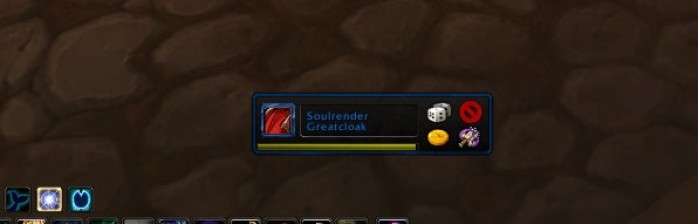 Se os itens que caíram não servem para nenhum dos seus talentos, você ganha uma bolsa chamada Recompensa de uma Terra Partida contendo uma quantia em gold (mais ou menos 25g) por ter participado da morte.- Quando cair um item que você possa usar, o jogo vai automaticamente rolar (necessidade ou ganancia) de acordo com o seu talento, se for para o primário no momento irá ser necessidade e se for o secundário do momento irá ser ganancia. Se você ganhar o item irá aparecer uma janela indicando qual item foi (isso também pode ser visto no chat), mas não é possível ver os rolls de quem não ganhou.