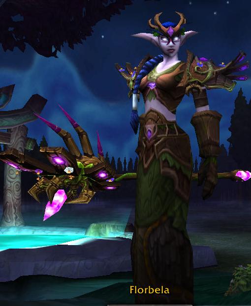 A Florbela é dona da recém-nascida coluna de fanart do site. Ela já tinha sido revelada ao público no primeiro concurso de transmog do site. A roupa dela é basicamente o Tier 5 de druida, o Traje de Nordrassil. O complemento dele é o Pilar da Ferocidade.