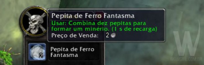 Como vocês podem ver, na hora da ‘coleta’ de cada material eu estava com os níveis das profissões bem baixos – 2 em mineração e 22 em herborismo (buff de tauren é amor) – e ainda assim, consegui coletar tudo. A tooltip mostra como funciona, e depois de juntados os 10 pedaços, é só clicar neles na sua bolsa pra fazer a conversão em uma planta/minério completo. Os minérios e as plantas aparecem como itens de cor laranja – o que quer dizer que darão experiência por um bom tempo.