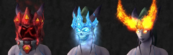 Vocês acompanharam nas últimas semanas nossos posts com detalhes dos três elmos cosméticos disponíveis na Blizzard Store (partes 1, 2 e 3). Agora vamos mostrar algumas sugestões de uso. Vale lembrar que, como são itens “neutros”, eles podem ser transmogrificados para qualquer tipo de armadura, sem restrições.
