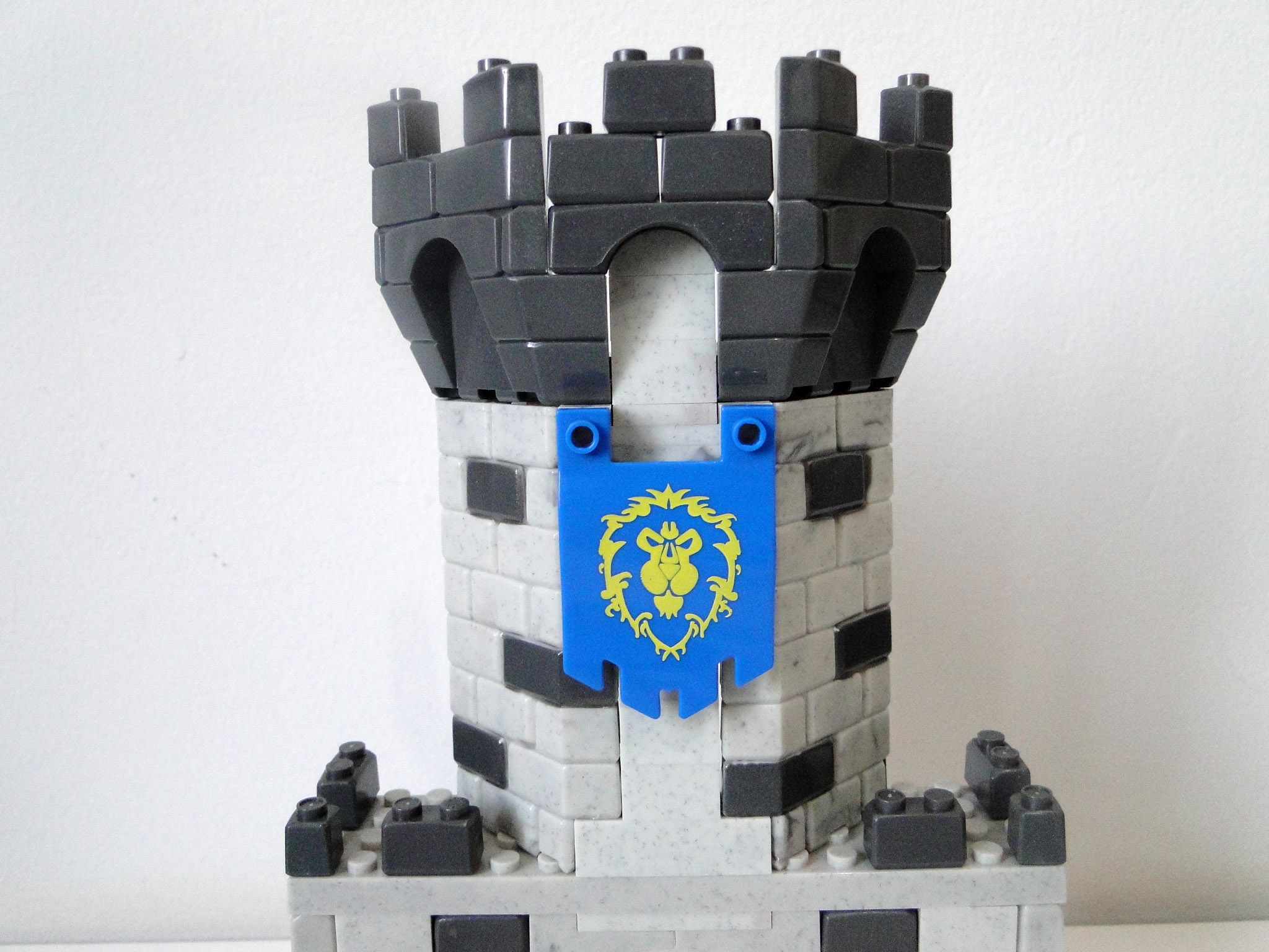 Tudo é bem detalhado, e a textura das peças ajuda a trazer mais vida ao conjunto – por exemplo, na Torre, existem peças com cantos arredondados e ‘tijolos’ de cores diferentes pra passar a impressão de desgaste, e se você tiver uma criança em casa (ou quiser abraçar a criança que vive em você), coisas como as catapultas funcionarem, e a parte de dentro da torre da Aliança também ter seus detalhes ajudam bastante numa brincadeira de roleplay.