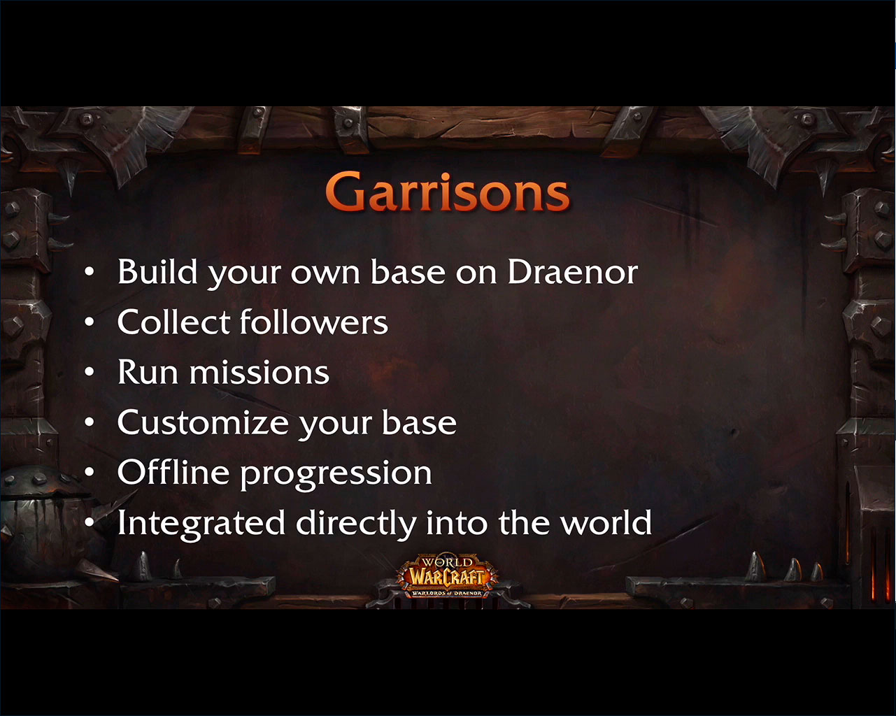 • Será possível escolher o local que quer ter sua guarnição em Draenor. Essa guarnição será algo semelhante ao esquema da fazenda do Vale dos Quatro Ventos em Pandaria e será visível apenas para o jogador;
