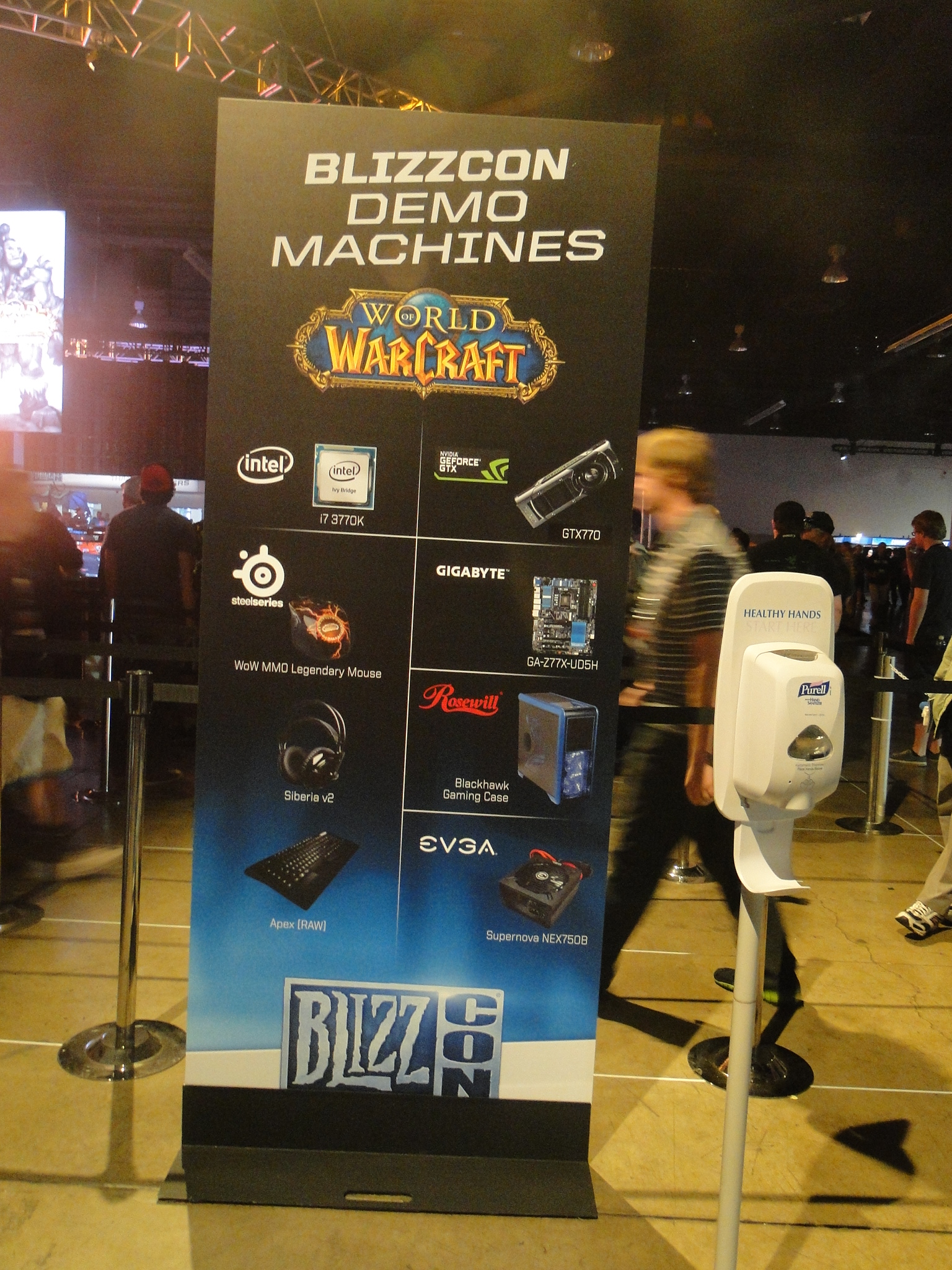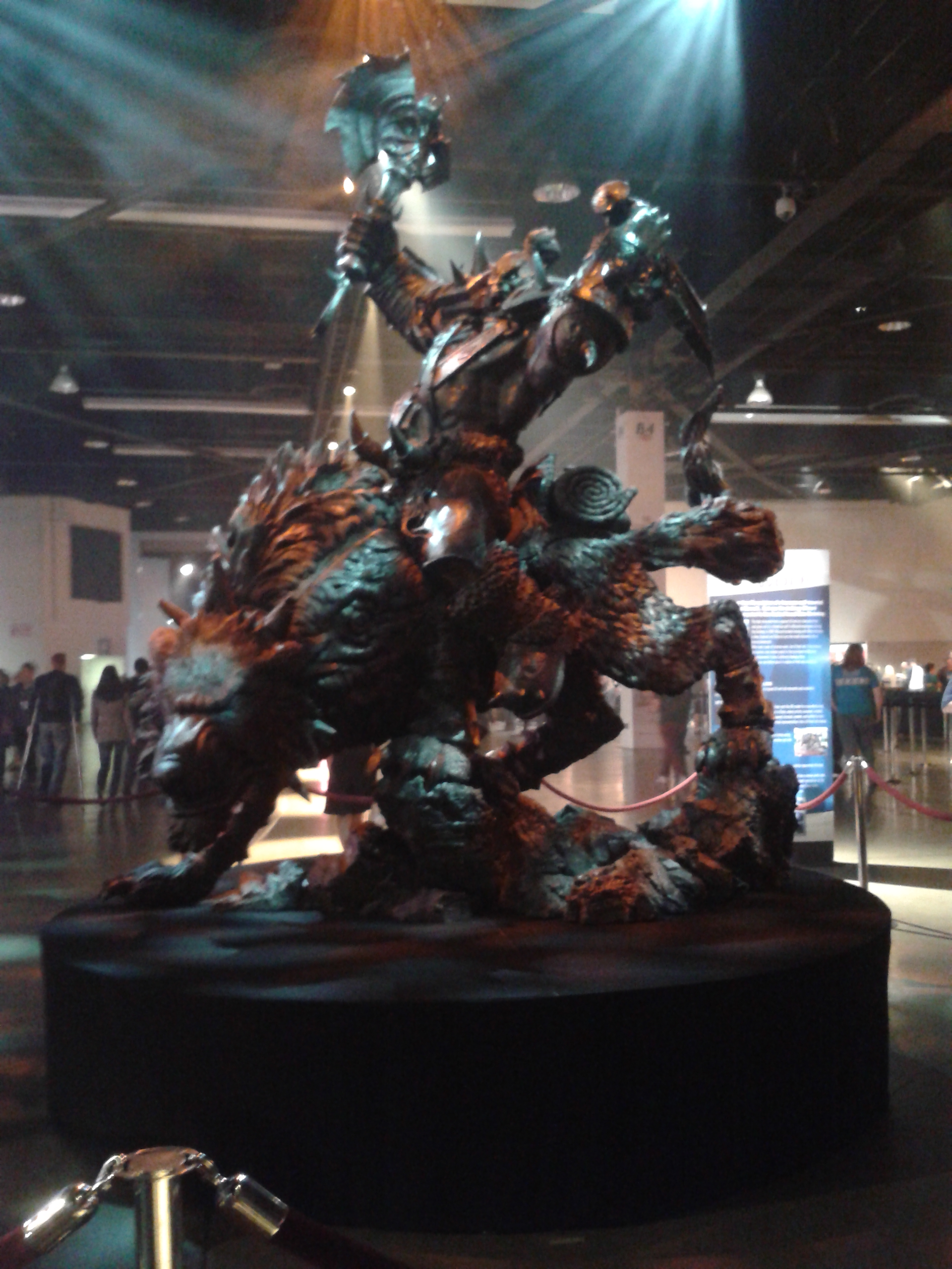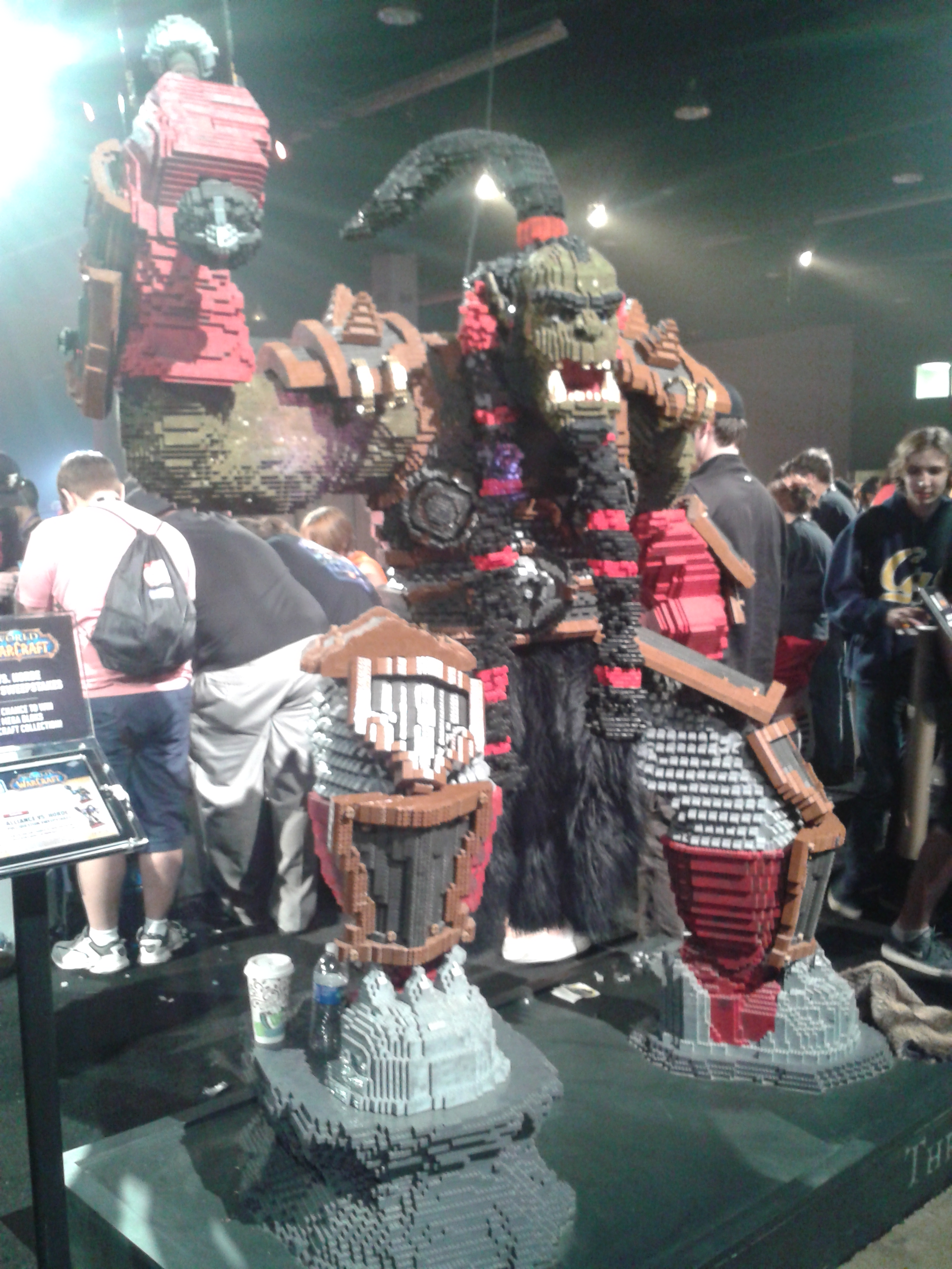 Acabando a cerimônia de abertura, fiquei por lá mesmo pra ver o painel de novidades sobre WoW, o What’s next?. Até então minha agenda tava certinha, eu tava crente que ia ver tudo o que queria, super feliz e otimista. O painel passou, tivemos mais detalhes sobre Warlords of Draenor que ajudaram a passar a desconfiança inicial que tive em relação à expansão, aí pensei “vou almoçar, dar uma voltinha, faço a minha entrevista (com os devs, será publicada em breve!) e volto pro próximo painel”. Almocei, e a realidade disse OOOOOOI!: É humanamente impossível ver tudo o que se quer ver na BlizzCon. Além dos painéis principais, temos painéis secundários para cada jogo, cabines com coisas divertidas tipo tirar fotos felizes, redublar cinematics, juntar papéis voadores pra conseguir prêmios, montar megabloks, jogos de tabuleiro, trivias, sessões específicas com dubladores, filas para autógrafos com os desenvolvedores de todos os jogos, fila para jogar os jogos, exposições, a loja… se eu tivesse uns 10 clones talvez conseguiria aproveitar tudo, mas tomei uma decisão difícil: dar prioridade pra tudo que não pudesse ser visto no ticket virtual. Foi ruim por um lado porque eu acabei não vendo as notícias na hora, e ainda preciso me atualizar sobre muita coisa relativas às noticias da convenção. Mas por outro, eu pude andar, conversar, ver a parte da convenção que não é mostrada no stream e sentir o clima de tudo, ao invés de ficar fixada nos painéis. O que mais pesou aí foi o fato de ser minha primeira convenção, e acho mesmo que tomei a decisão correta 😉