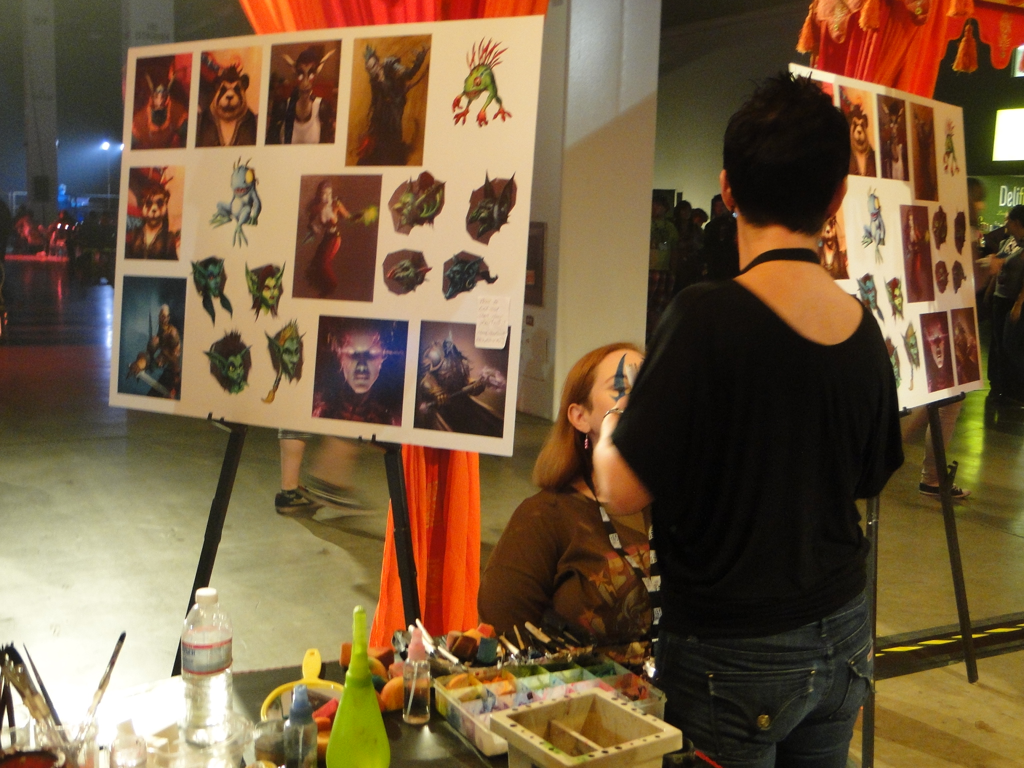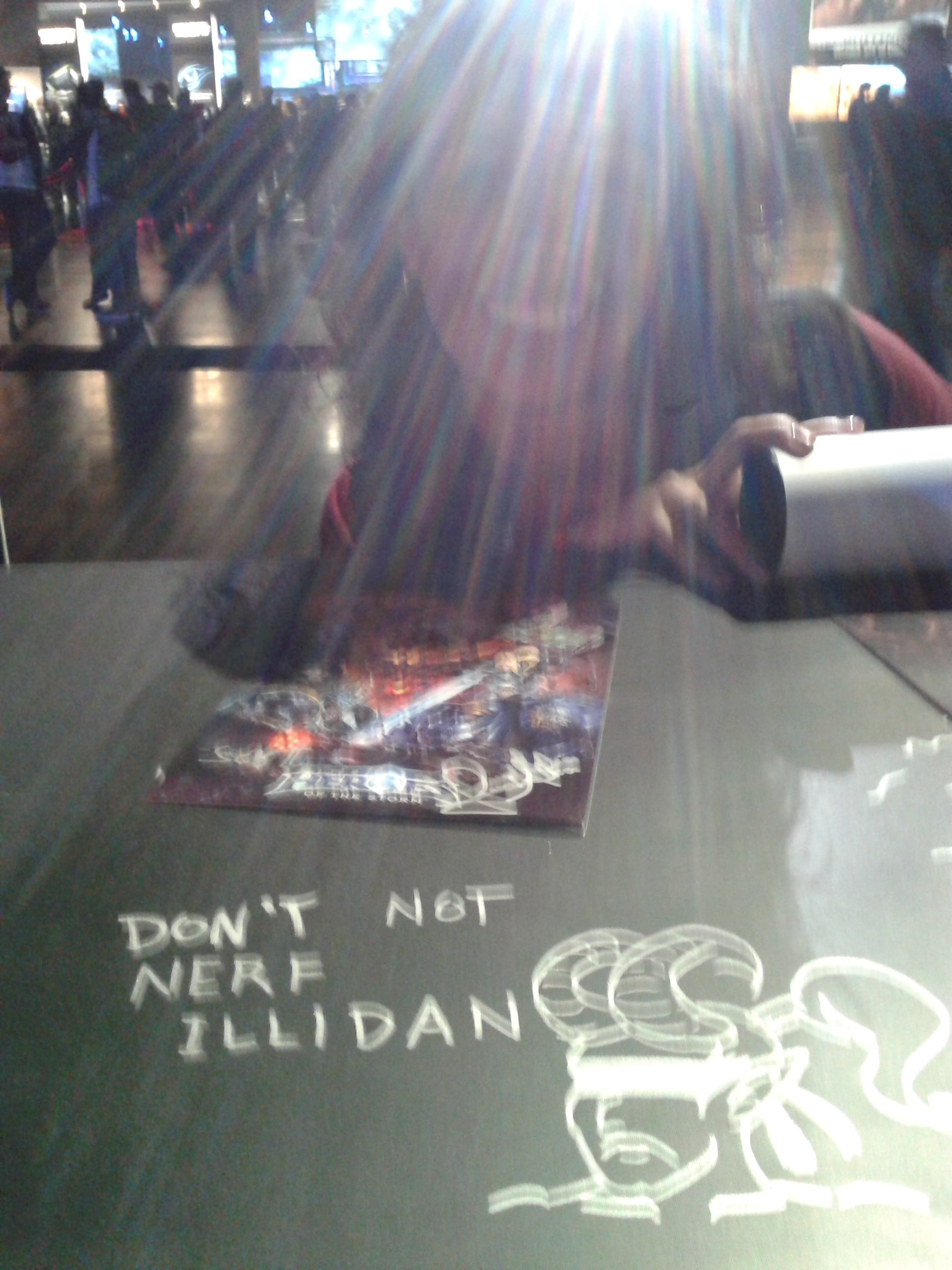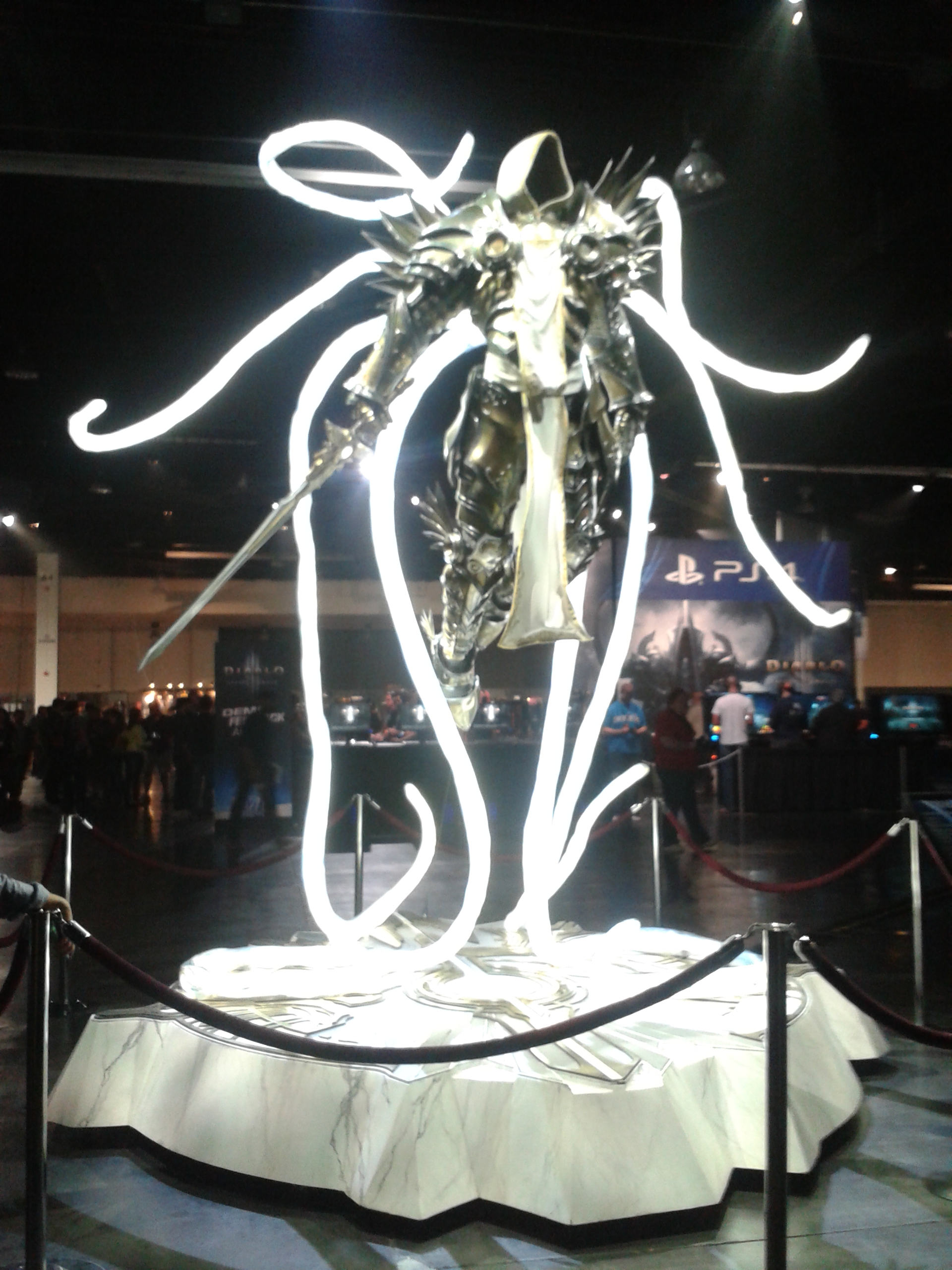 Acabando a cerimônia de abertura, fiquei por lá mesmo pra ver o painel de novidades sobre WoW, o What’s next?. Até então minha agenda tava certinha, eu tava crente que ia ver tudo o que queria, super feliz e otimista. O painel passou, tivemos mais detalhes sobre Warlords of Draenor que ajudaram a passar a desconfiança inicial que tive em relação à expansão, aí pensei “vou almoçar, dar uma voltinha, faço a minha entrevista (com os devs, será publicada em breve!) e volto pro próximo painel”. Almocei, e a realidade disse OOOOOOI!: É humanamente impossível ver tudo o que se quer ver na BlizzCon. Além dos painéis principais, temos painéis secundários para cada jogo, cabines com coisas divertidas tipo tirar fotos felizes, redublar cinematics, juntar papéis voadores pra conseguir prêmios, montar megabloks, jogos de tabuleiro, trivias, sessões específicas com dubladores, filas para autógrafos com os desenvolvedores de todos os jogos, fila para jogar os jogos, exposições, a loja… se eu tivesse uns 10 clones talvez conseguiria aproveitar tudo, mas tomei uma decisão difícil: dar prioridade pra tudo que não pudesse ser visto no ticket virtual. Foi ruim por um lado porque eu acabei não vendo as notícias na hora, e ainda preciso me atualizar sobre muita coisa relativas às noticias da convenção. Mas por outro, eu pude andar, conversar, ver a parte da convenção que não é mostrada no stream e sentir o clima de tudo, ao invés de ficar fixada nos painéis. O que mais pesou aí foi o fato de ser minha primeira convenção, e acho mesmo que tomei a decisão correta 😉