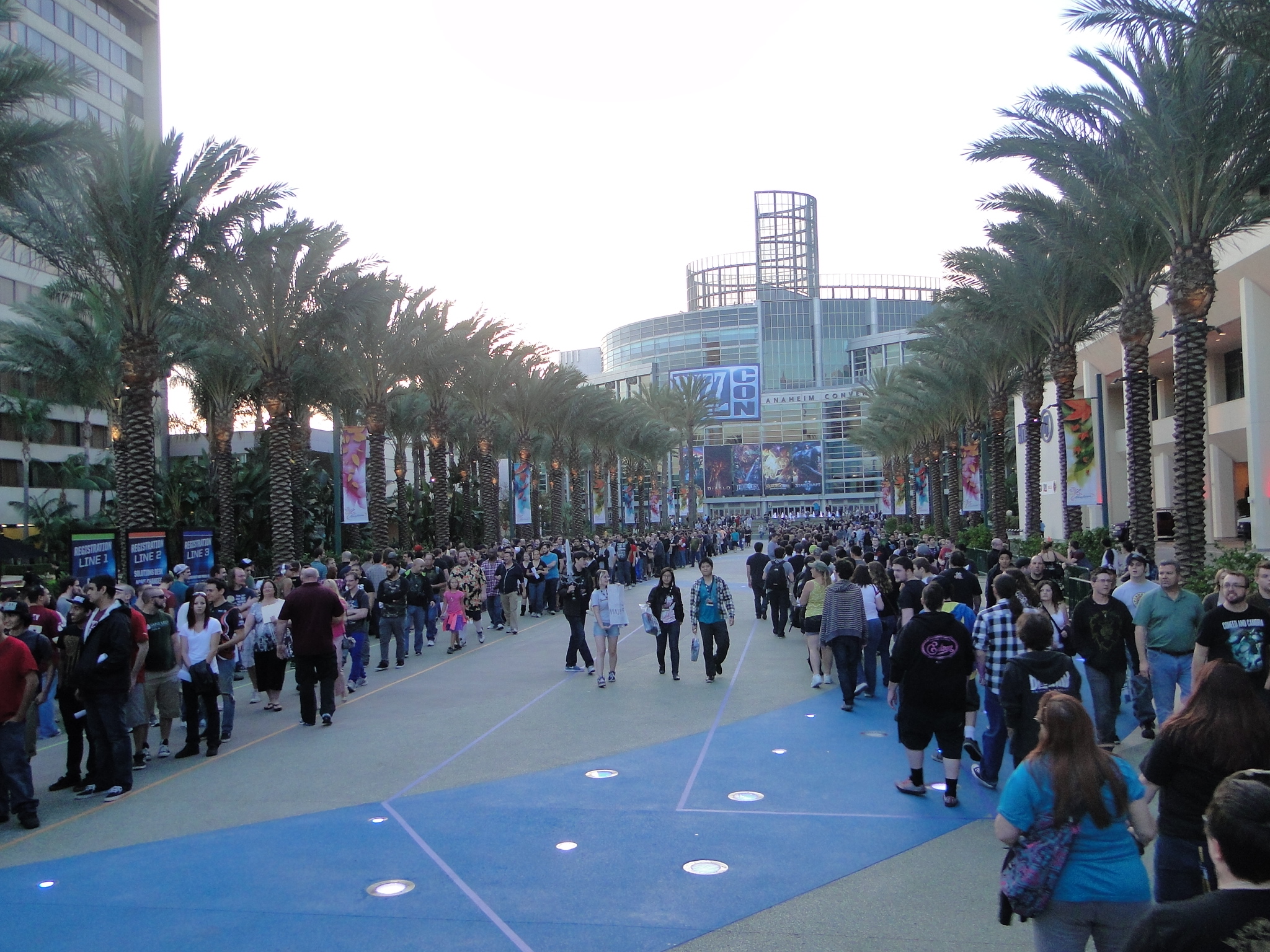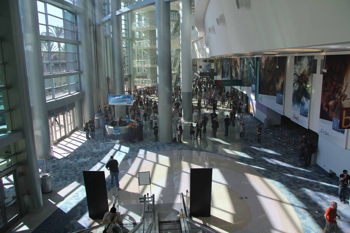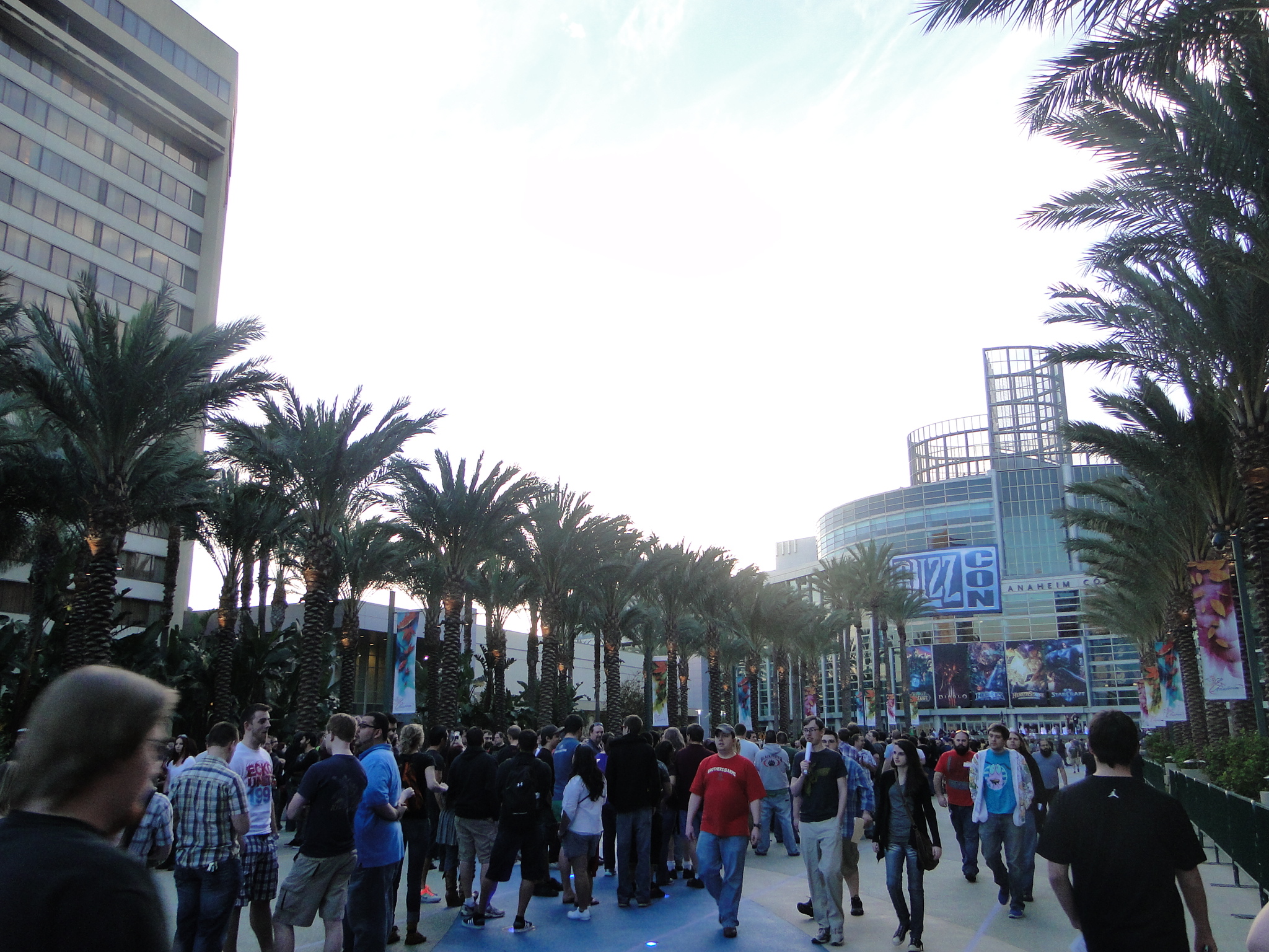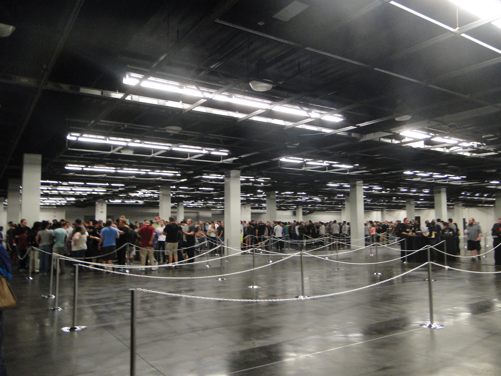 Cheguei a Anaheim no dia 07, e ja era possível ver a cidade lotada de gente que veio pra Con: camisetas de WoW, Diablo, StarCraft e outras nerdices pipocavam em todos os cantos, e era super divertido ver a cara de reconhecimento das pessoas tipo “eu sei porque você veio pra cá, hehe”. Além disso, era bem fácil trombar com pró-players, staff da Blizzard e imprensa pelas redondezas do Centro de Convenções. Em volta dele tem muito, muito hotel, então todo mundo ficava por ali mesmo, aumentando a ansiedade pro dia seguinte. As credenciais foram distribuidas (a fila básica que aparece na foto abaixo é pra pegar credencial) e todos sairam felizes com suas goodie bags pra descansar pra feira.