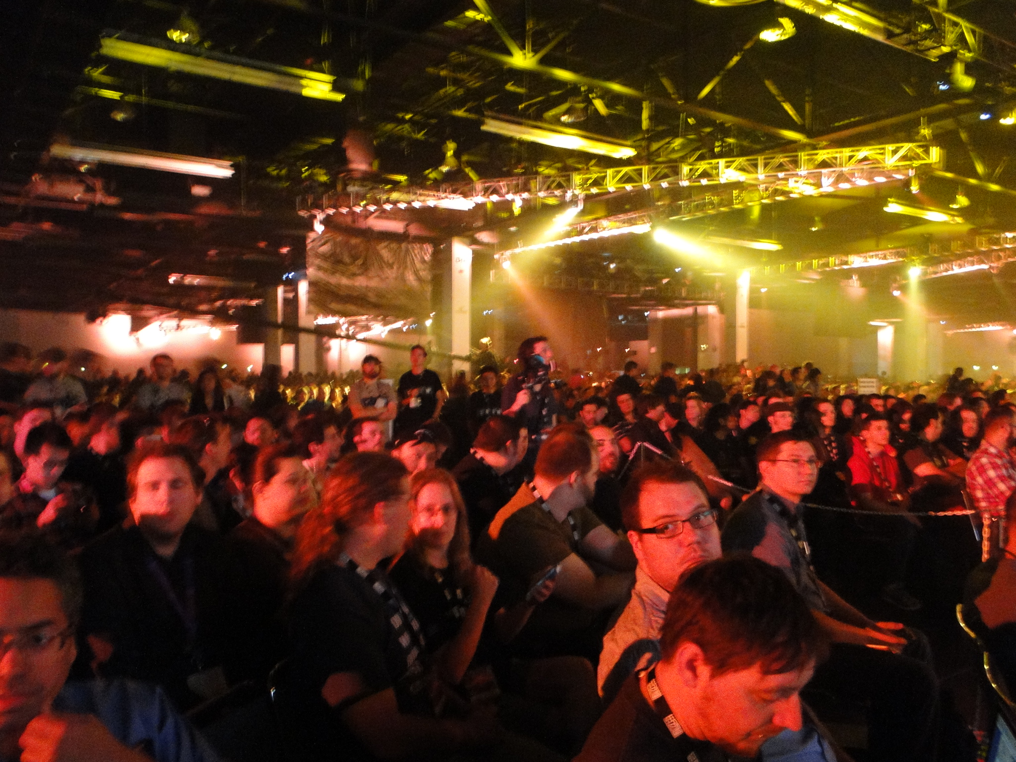 Entrar no centro de convenções era… chegar num universo paralelo, onde de alguma forma eu me senti completamente em casa. Figuras e cenários familiares, todo mundo falando no ~dialeto~ dos jogos da Blizzard, a facilidade pra se puxar conversas com qualquer pessoa porque era garantido que todo mundo tinha pelo menos um assunto em comum. Fomos procurar lugar pra sentar e esperar a cerimônia de abertura, que foi mais uma afirmação de que sim, de alguma forma, a gente tava em casa. Não dá pra descrever a sensação de TANTA gente se empolgando com as mesmas coisas que você ali, do seu lado, quando geralmente, no dia a dia, a tendência é que todo mundo pense que você ta falando grego haha.
