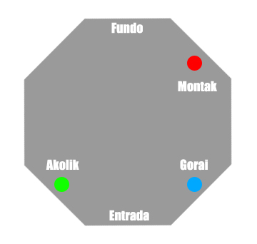 A jaula superior direita contém Montak.  Quando ele é devorado, Thok substitui duas habilidades anteriores por duas novas específicas de Fogo: