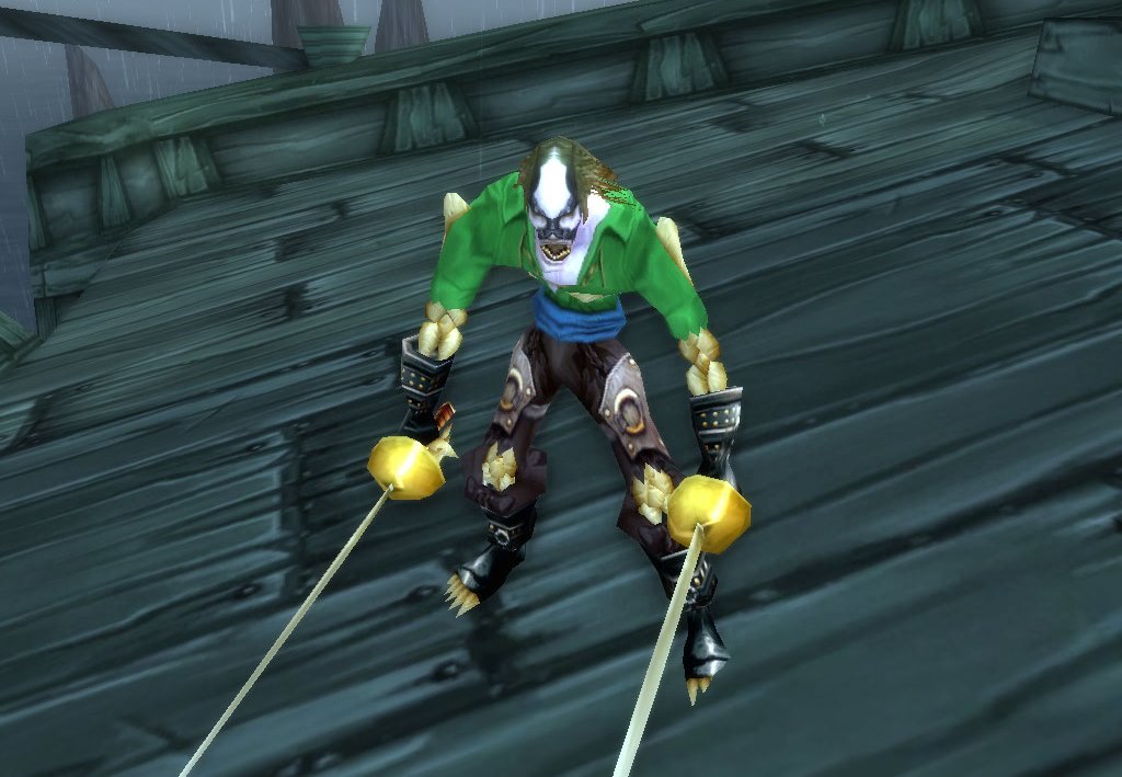 Mais uma vez, serviu de munição no braço da catapulta e se atirou para o cais do outro navio de guerra dos Renegados, que estava completamente vazio. Desta vez, precisou segurar-se na rede que pendia de um dos mastros para não aterrissar direto na água, do outro lado do navio.