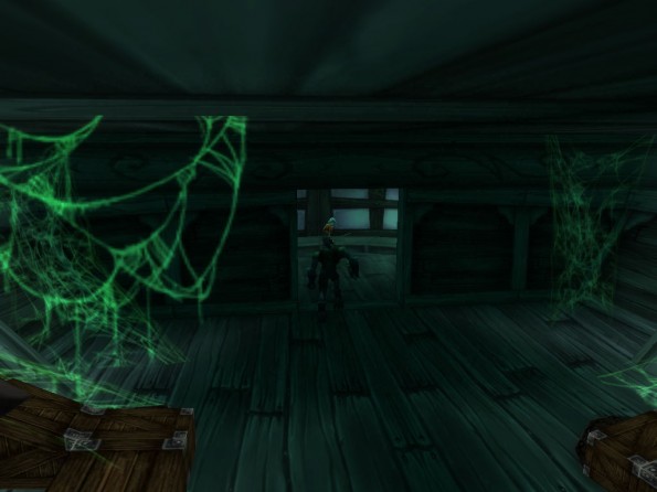 Oculto pelos entulhos, Dareon tentou analisar a sala. Conseguia ver uma lamparina, cuja luz iluminava diversos mapas espalhados pela mesa e outros enrolados nos cantos. Havia garrafas jogadas no chão, e o morto-vivo, equilibrando seu enorme chapéu pontudo no topo da cabeça, caminhava de um lado para o outro enquanto examinava pergaminhos corroídos.
