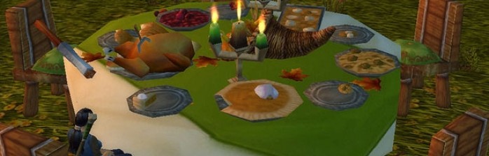 Em Azeroth, o evento dura uma semana, e em 2013 acontece dos dias 25 de novembro a 02 de dezembro. É uma ótima oportunidade para upar Culinária, de maneira fácil e barata pelo menos até o nível 355, já que muitas das conquistas do evento são baseadas nessa profissão. Ao fim do evento, você recebe o título “O Peregrino“, e um mascote, o Peru Gorducho, ensinado pelo item Gaiola de Peru. O evento não conta para completar o meta Um ano de Lutas, um ano de Conquistas (What A Long, Strange Trip It’s Been).