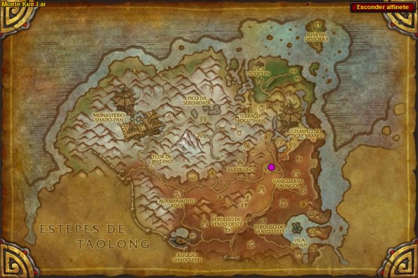 Rank 4. Habilita o chefe Mestre Ka-bum. Você consegue a missão em Monte Kun’lai, durante a diária Moedor de juta. Note que é preciso matar hozens enquanto estiver ‘dirigindo’ Kota Kon e, mesmo que já tenha matado hozens suficientes para completar a missão, é necessário que continue matando até que você receba o saque do Pavio de Pelo de Hozen. Você pode recebê-la no primeiro hozen que morrer ou depois de 2 horas matando PNJs. O drop é completamente aleatório. Veja no mapa abaixo onde iniciar a missão e em qual área encontrar os PNJs necessários: