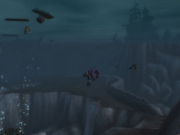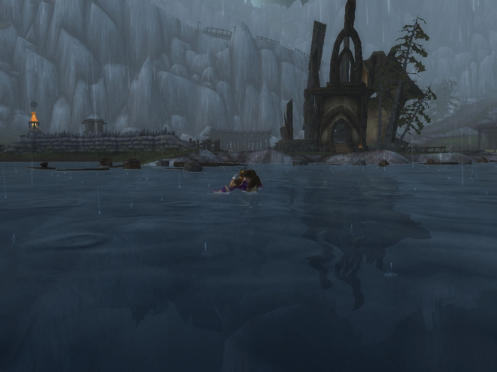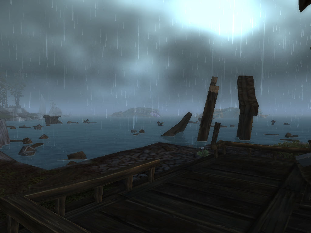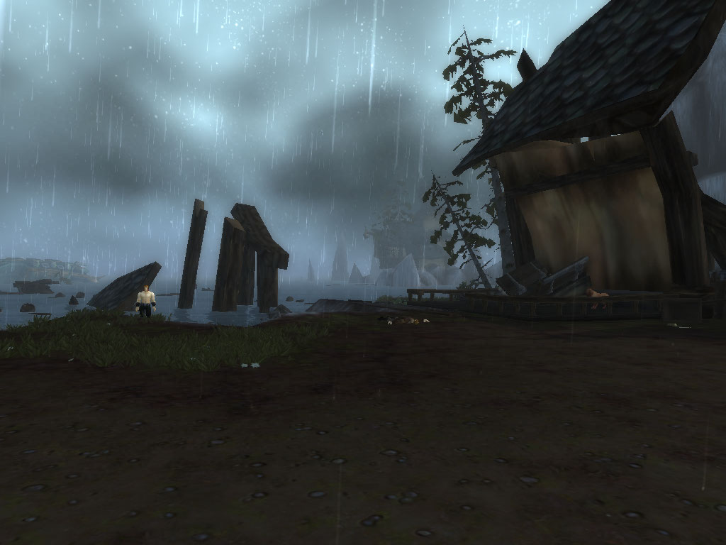 Ao longe, os dois navios dos Renegados estavam afundados. Os campos, ricos em plantações e árvores, também haviam sido submergidos, dando lugar à uma imensidão aquática de restos flutuantes.