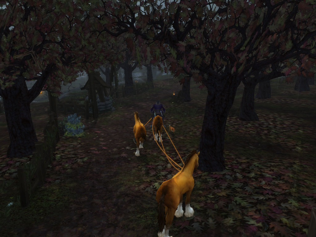 O gorjala continuava à beira do lago, mas aproximava-se cada vez mais dos cavalos. Dareon recolheu todos as cordas que encontrou pelos estábulos e fez alguns nós; depois, atirou os laços sobre as cabeças da maior quantidade de cavalos que conseguiu e os levou até Lorna Crowley.