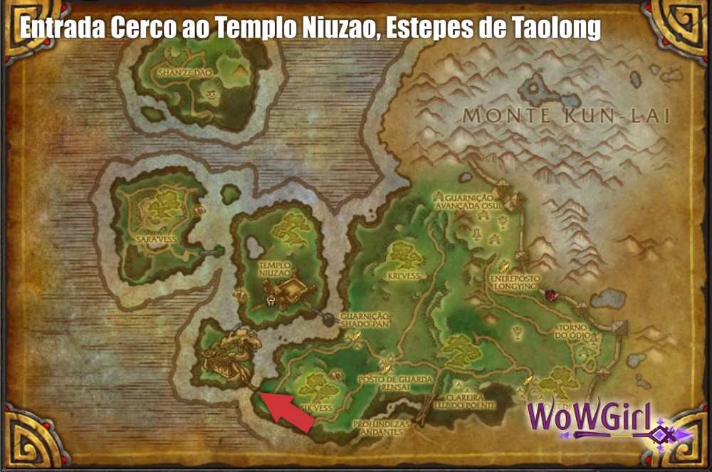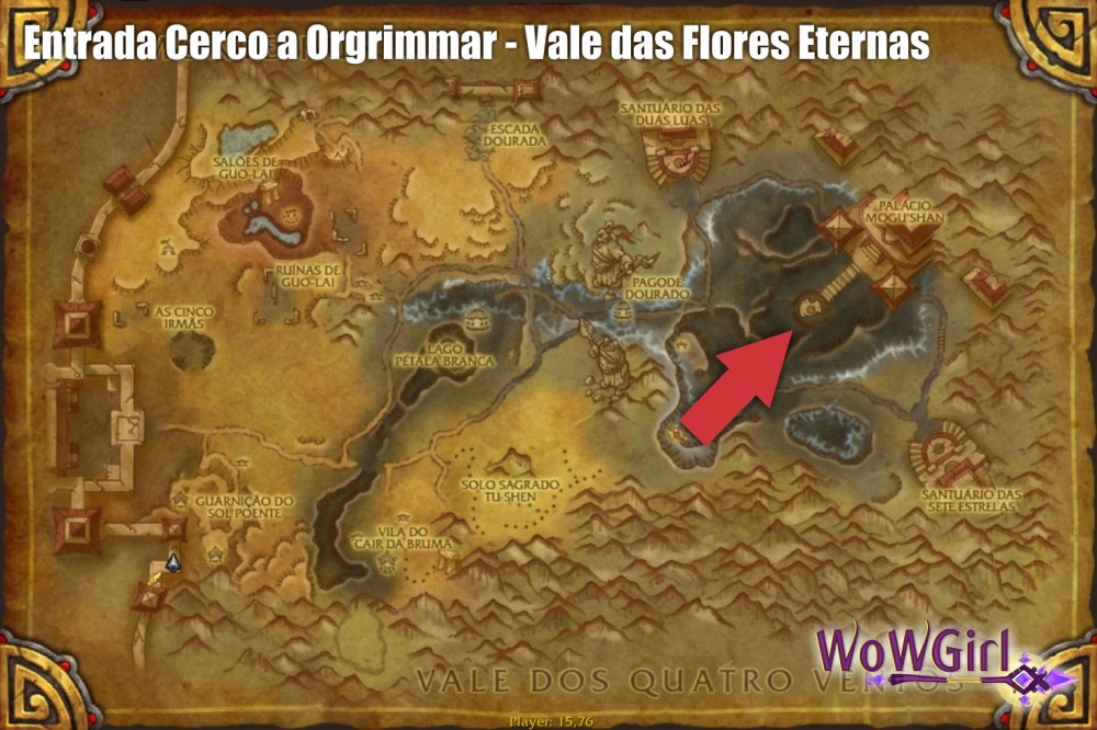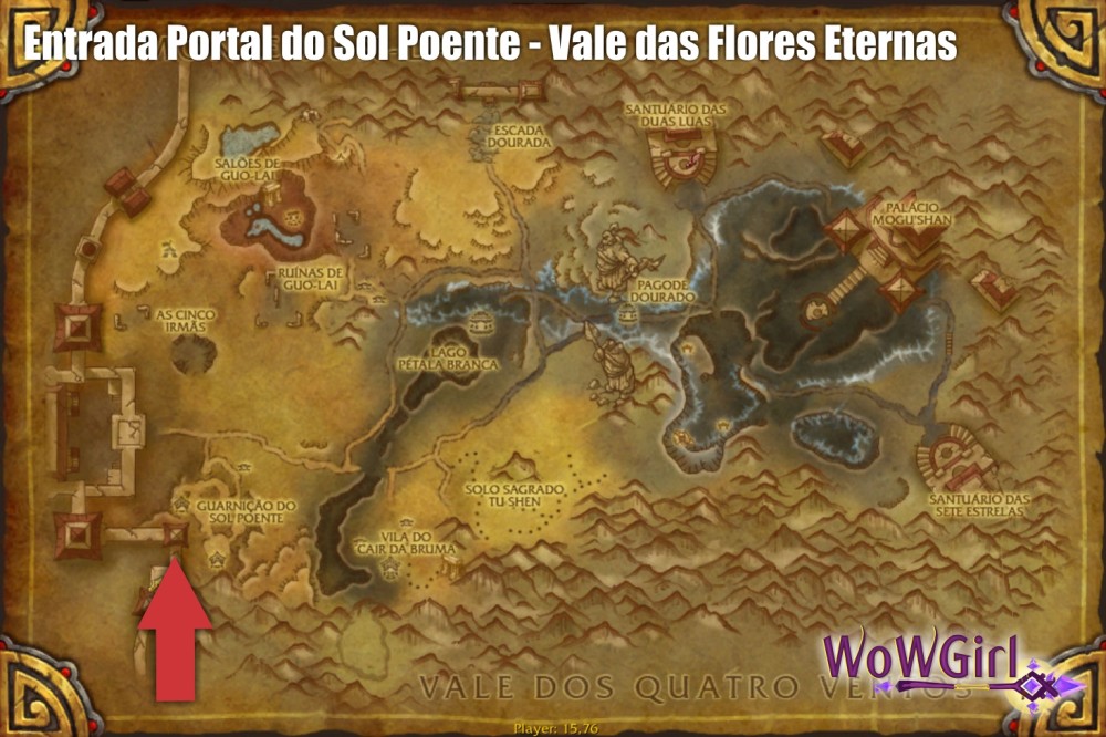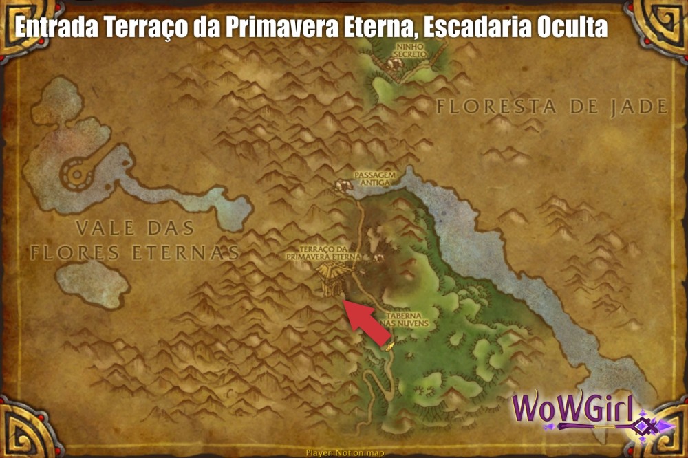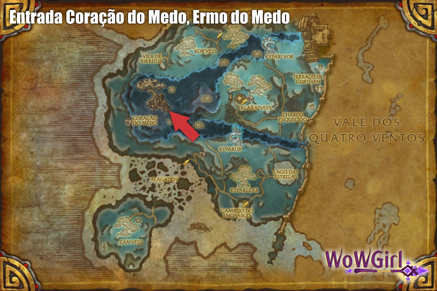 Localização: No Espinhaço da Serpente, em Vale das Flores Eternas. O portal da masmorra fica em cima da muralha, no ponto marcado com a seta no mapa abaixo: