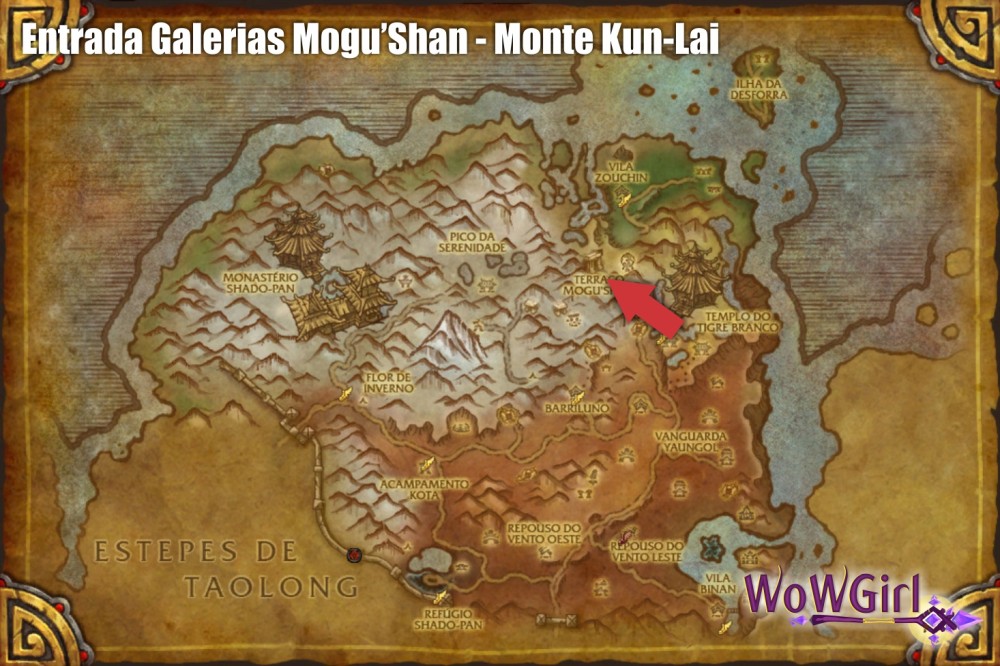 A primeira raide da expansão, Galerias Mogu’Shan, tem 6 chefes e sua entrada fica em Monte Kun-Lai: