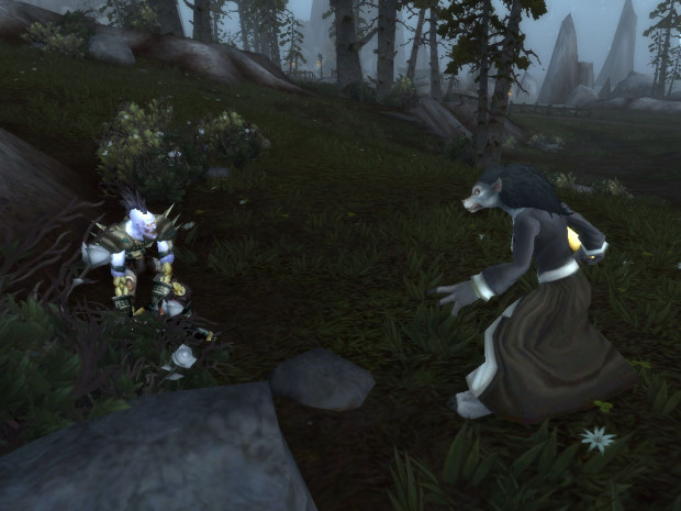 Os dois caíram no chão e rolaram para trás até atingirem um arbusto encharcado. Dareon observou a briga até que finalmente a worgenin se levantou e embrenhou-se na mata novamente, deixando para trás os restos do Renegado caídos na lama.
