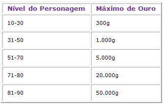 O ouro que o personagem pode levar consigo na transferência também é limitado (de acordo com o nível do personagem).