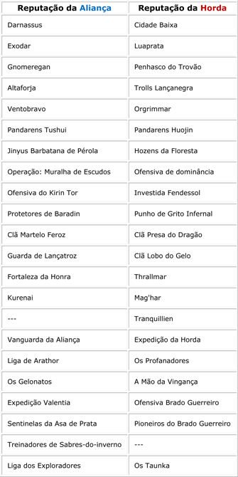 As reputações específicas de facção serão convertidas para reputações equivalentes (bem como as montarias e tabardos).