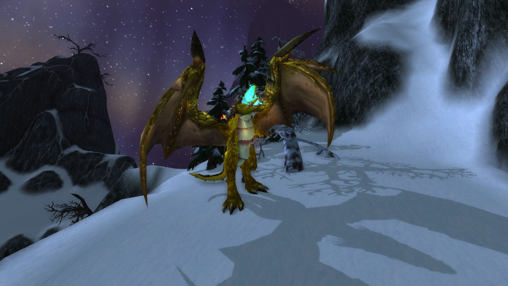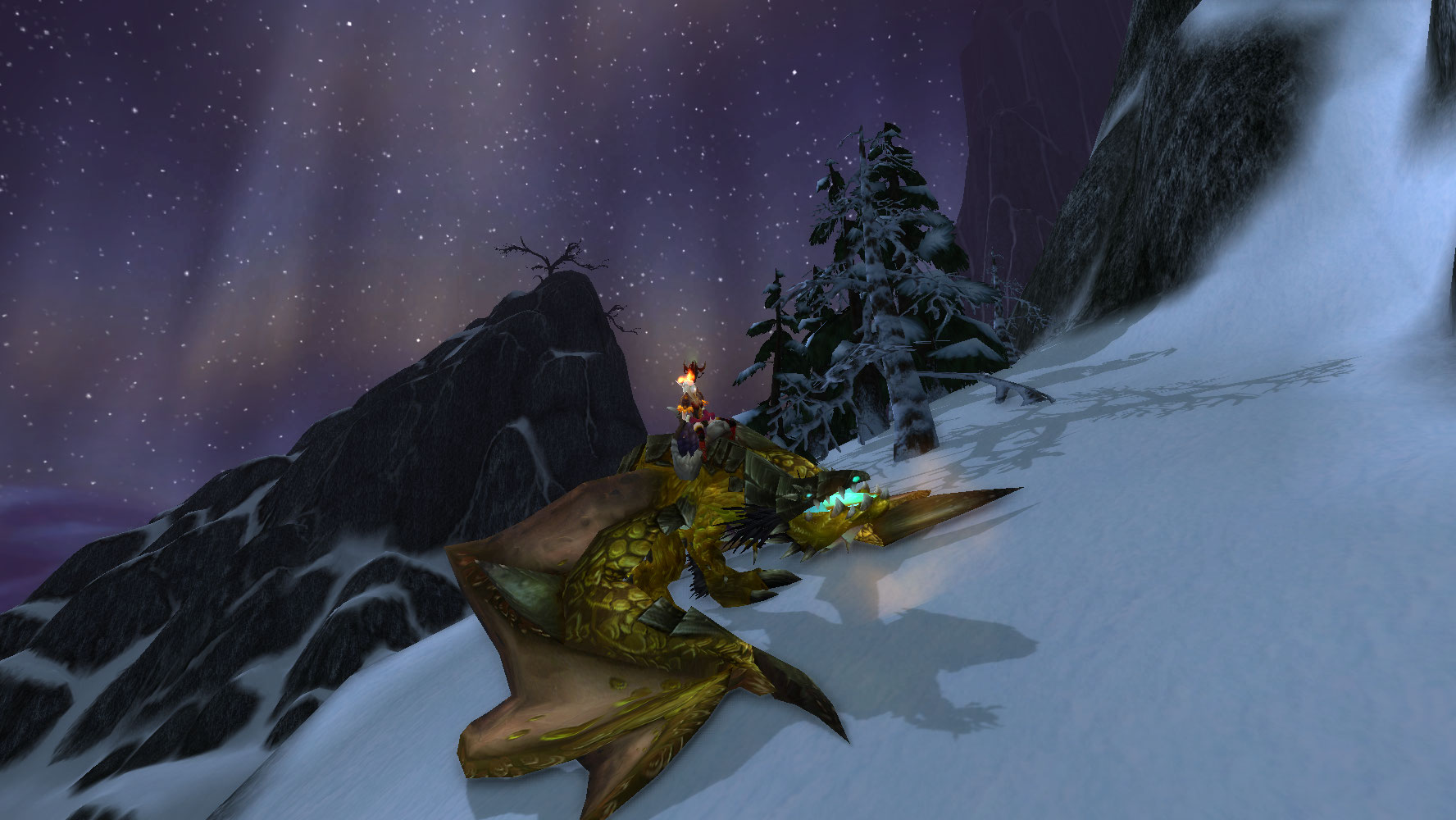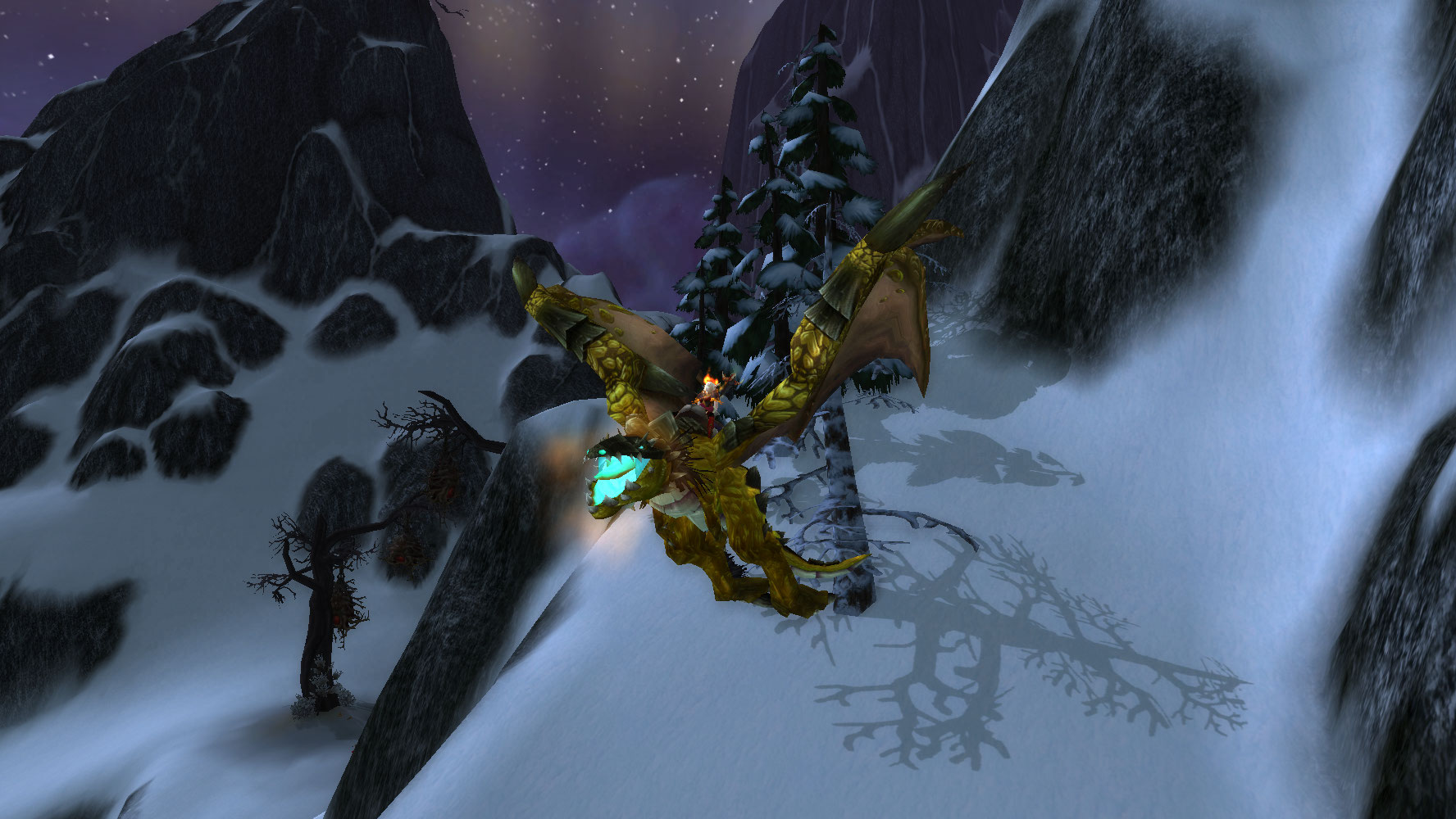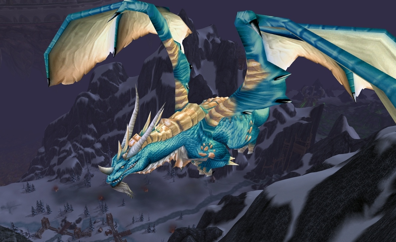 Viragosa sobrevoando os Picos Tempestuosos. Imagem: WoWHead – wowhead
