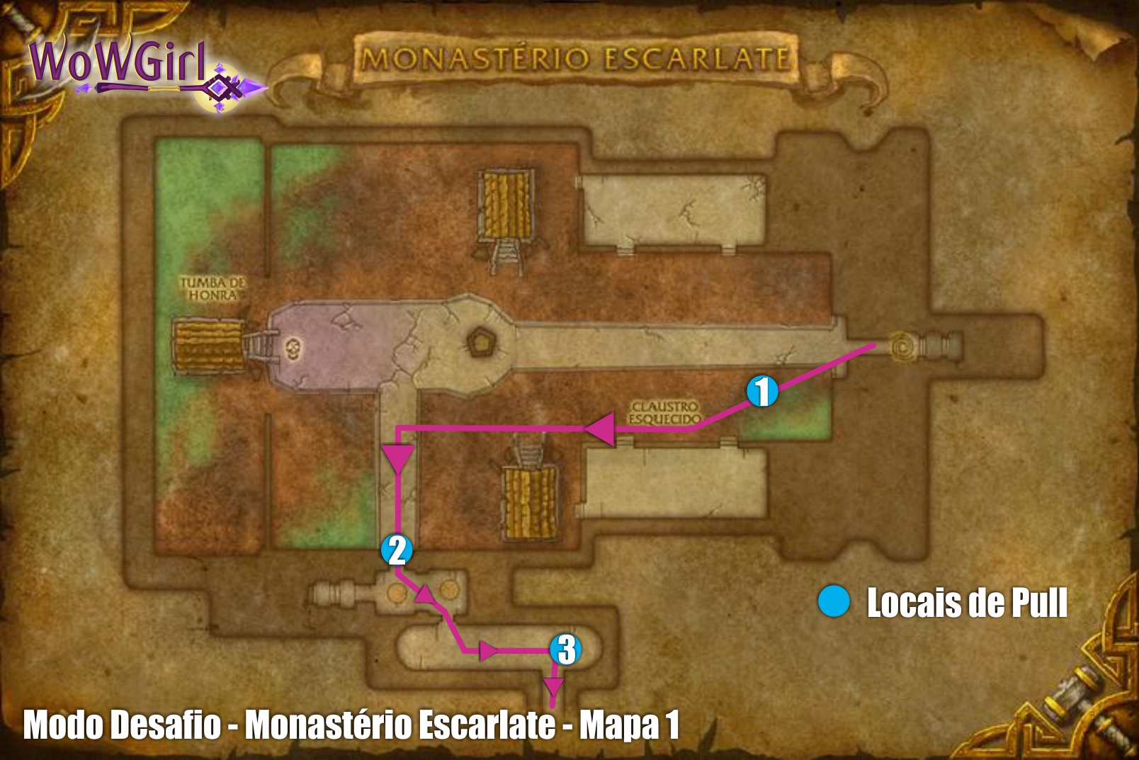 O Monastério Escarlate é considerada uma das masmorras no Modo Desafio em que a dificuldade é de nível difícil. Tempos necessários para cada medalha: