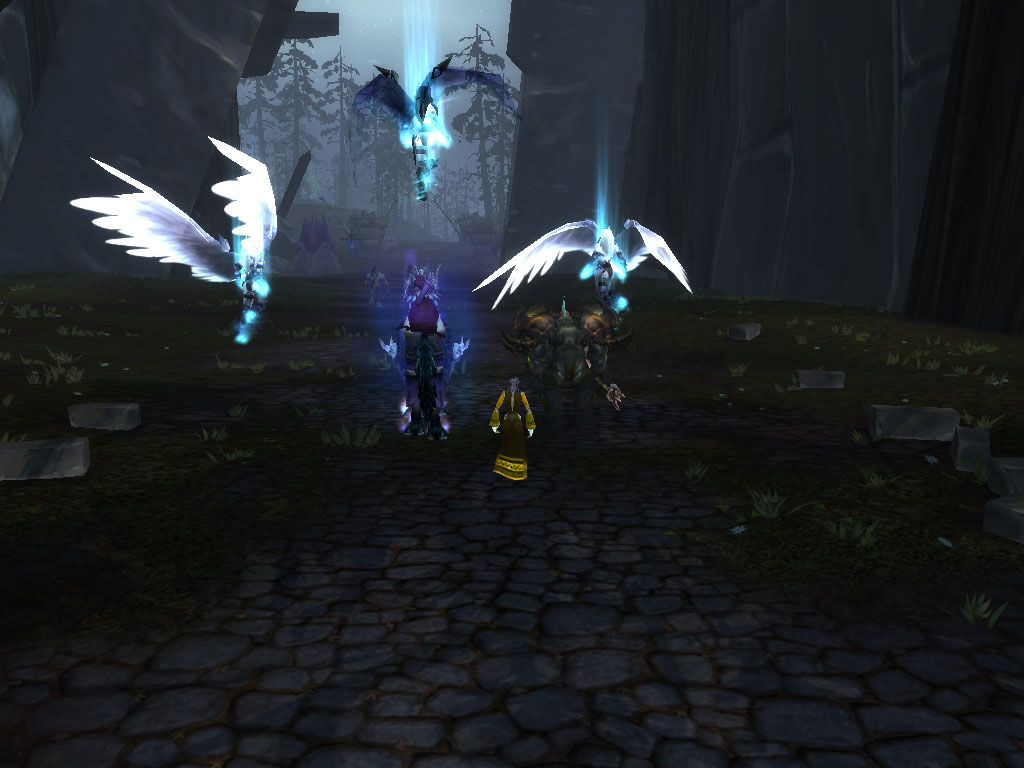 O Senhor da Guerra Cromush deu um grito de ódio e correu em direção aos três traidores, empunhando seu machado com toda a força que podia. As val’kyren, transtornadas, voaram para ajudá-lo, cobrindo-os com a sombra de suas asas. Godfrey atirava contra elas, tentando acertar qualquer uma das três, mas os projéteis passavam por seus corpos sem machucá-las.