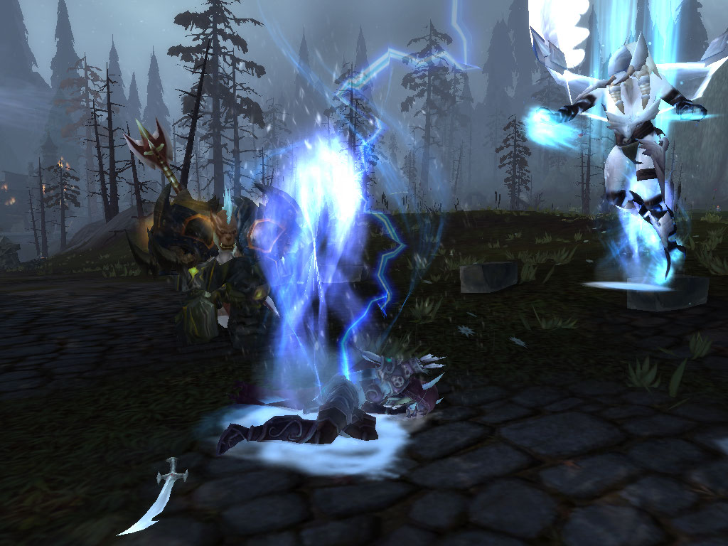 Halie e Cromush afastaram-se quando o brilho azulado iluminou o solo, mais forte do que nunca, refletindo em seus rostos e cegando-os durante um instante. A silhueta de Sylvana era visível em meio à luz, sendo erguida no ar pela forte magia das val’kyren.
