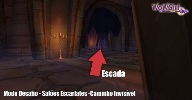 Nessa escada o grupo precisa parar, pois para contar o numero certo de mobs requerida no desafio vocês vão precisar lidar com o ultimo grupo das salas por onde vocês acabaram de passar invisíveis.