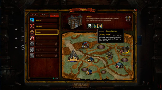 As Guarnições estão ligadas a Warlords of Draenor, elas são bases que cada jogador constrói para ajudar na luta contra a Horda de Ferro – o objetivo é fazer com que os jogadores criem um exército. Entretanto, a tecnologia que usamos para criar as Guarnições provavelmente serão usadas novamente no futuro.