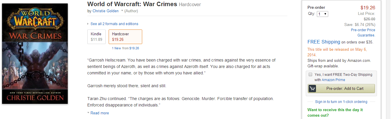 Já foi colocado no site Amazon que o livro “War Crimes”, que contará a história do julgamento de Garrosh e o que pode vir a partir daí, já está em pré-venda com entrega para dia 6 de Maio deste ano (já mencionamos isso neste post aqui). Você pode ir para o site da Amazon e encomendar o seu clicando aqui.