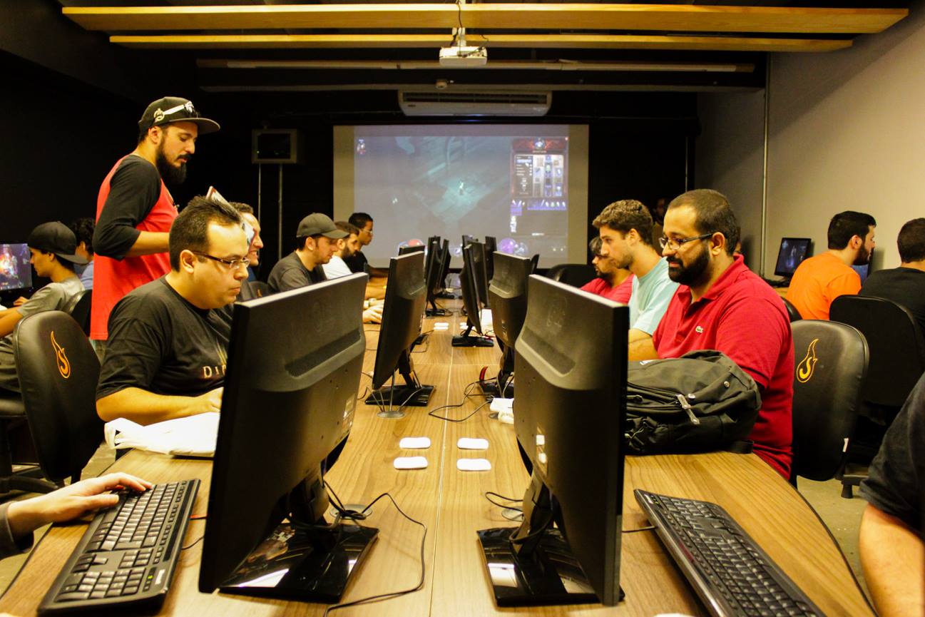 - Sala com computadores rodando Diablo 3: Reaper of Souls. Foto: Nepô