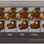 Também criamos diversas bocas, ou fonemas, para usar em animações de conversa. Mais uma vez, posicionar os elementos do rosto consome muito tempo, por isso ter algo por onde começar é extremamente útil. Também faz parecer que o personagem foi animado por uma pessoa, quando na verdade existe um grupo grande trabalhando nele ao mesmo tempo.