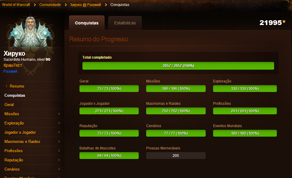 Dizem que jogos no estilo MMORPGs não “tem fim”. Sempre há algo novo para fazer, pessoas para conhecer, conquistas, evoluir novos personagens.. Porém, recentemente um jogador conhecido como Хируко do servidor europeu Razuvious conseguiu praticamente “fechar” o jogo ao completar um feito incrível: Completou T-O-D-A-S as conquistas do jogo!
