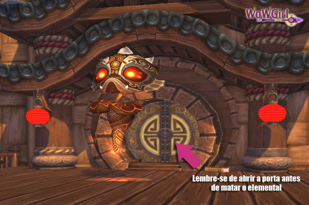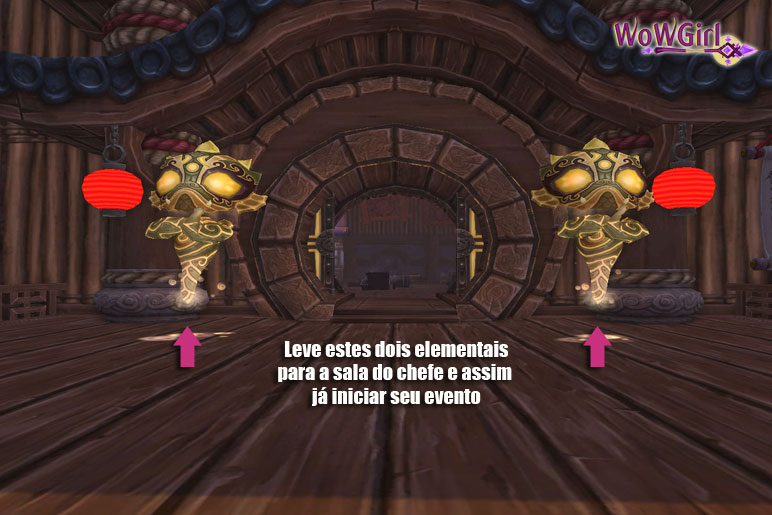 Para começar essa masmorra, primeiramente vocês precisam se atentar a dois, ou 5 pequenos pontos logo de inicio. Os Hozens iniciais estão sendo afetados por pequenos elementais que ficam nas salas. Os dois primeiros Brigões Hozen Encharcados por dois Bailarinos d’Água, e os 3 Brigões Hozen Inflamados da sala seguinte pelos Foguinhos Sapecas que ficam lá no alto. Uma forma de você conseguir lidar rápido com isso é o seu tanque puxar tudo até a segunda sala e alguém usar a Trombeta de Batalha. Ao usar esse pequeno item, você dará cabo desses sujeitos. Caso seu grupo não tenha este item, vocês podem fazer uso de uma macro para selecionar os foguinhos e matá-los o mais rápido possível enquanto seu tanque posiciona e kitea os Hozens. Vocês podem usar Bloodlust/Heroismo nessa parte.