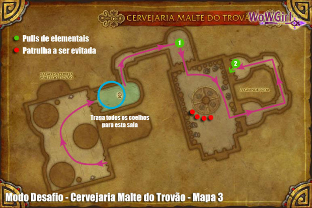 Após acabar com o saltitante chefe, vocês irão se deparar com um Cervejante Maltado Empanzinado, sujeito simpático com aqueles que gostam de uma boa bebida, faz uso da habilidade Inchar, que força o grupo a se manter afastados uns dos outros, para que ninguém atinja o coleguinha sem querer, né? Enquanto ele é morto, o tanque ou um DPS de longo alcance pode seguir e abrir a sala da próxima sala e ficar de olho na posição da patrulha de Cervejantes Maltados Leveduro que deve ser evitada.